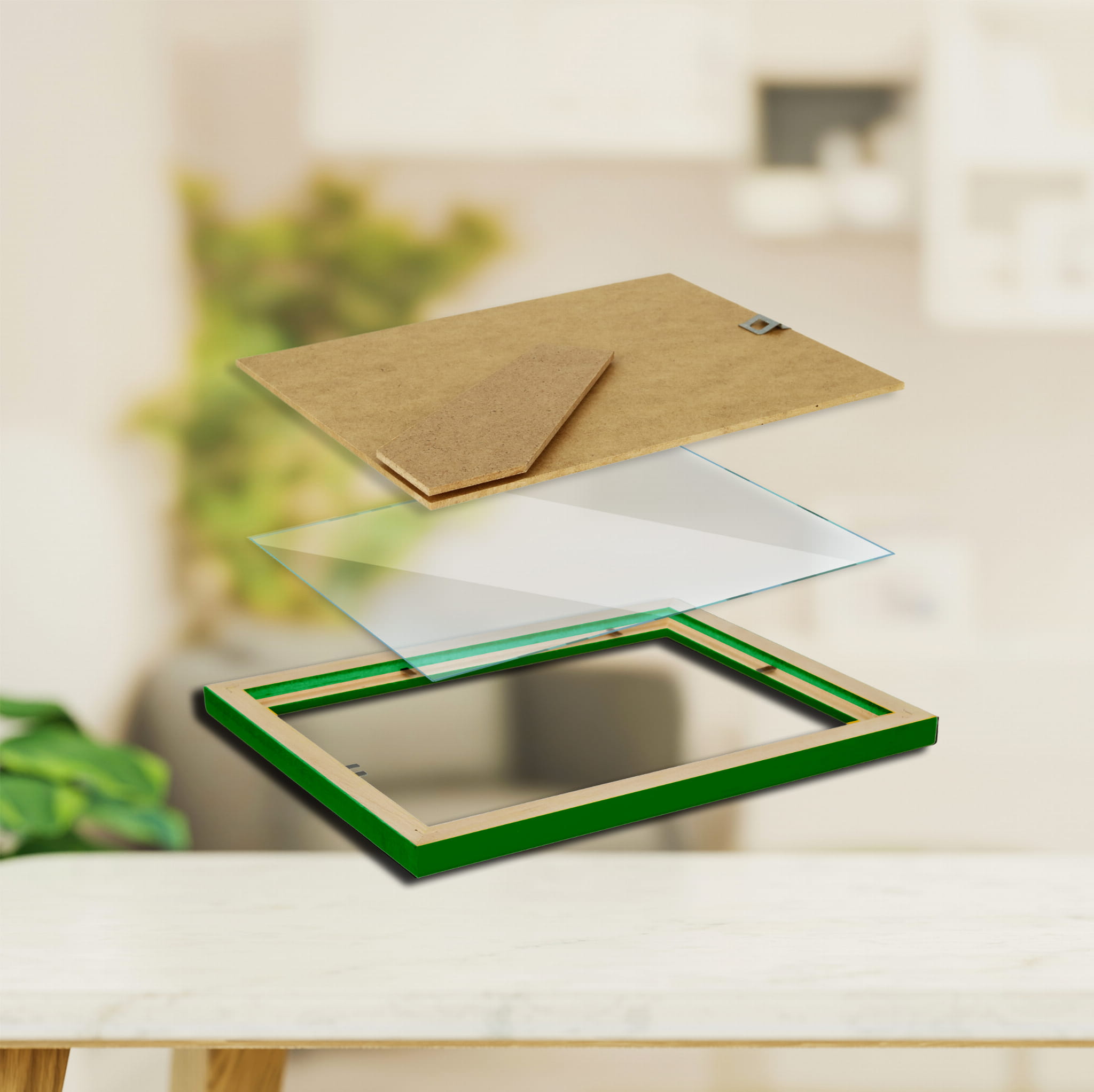 Ramka w kolorze zielonym wykonana jest z wysokiej jakości, naturalnego drewna. Odporna na uszkodzenia, nie tłukąca plexi zastępuje tradycyjną szybkę, co wydłuża żywotność ramki. Tył ramki wyposażony jest w płytę HDF o grubości 2,5 mm oraz wyprofilowaną stopę która umożliwia ustawienie ramki w pionie lub poziomie. Dodatkowo do ramki dołączona jest zawieszka, dzięki której ramkę można również powiesić na ścianie. Ramka idealnie sprawdzi się do oprawy zdjęć i różnego rodzaju plakatów. Ekologiczna ramka, której wszystkie elementy są recyklingowe nie zanieczyszcza środowiska.