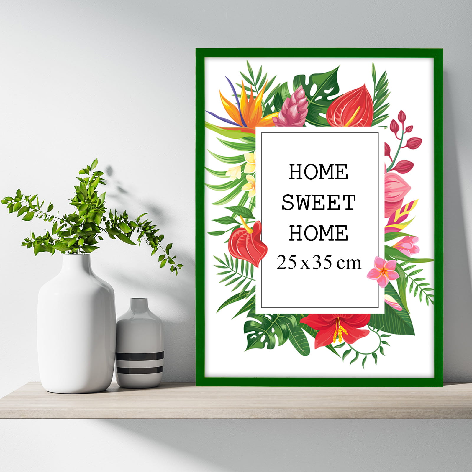 Drewniana ramka w rozmiarze 25x35 cm w kolorze zielonym.