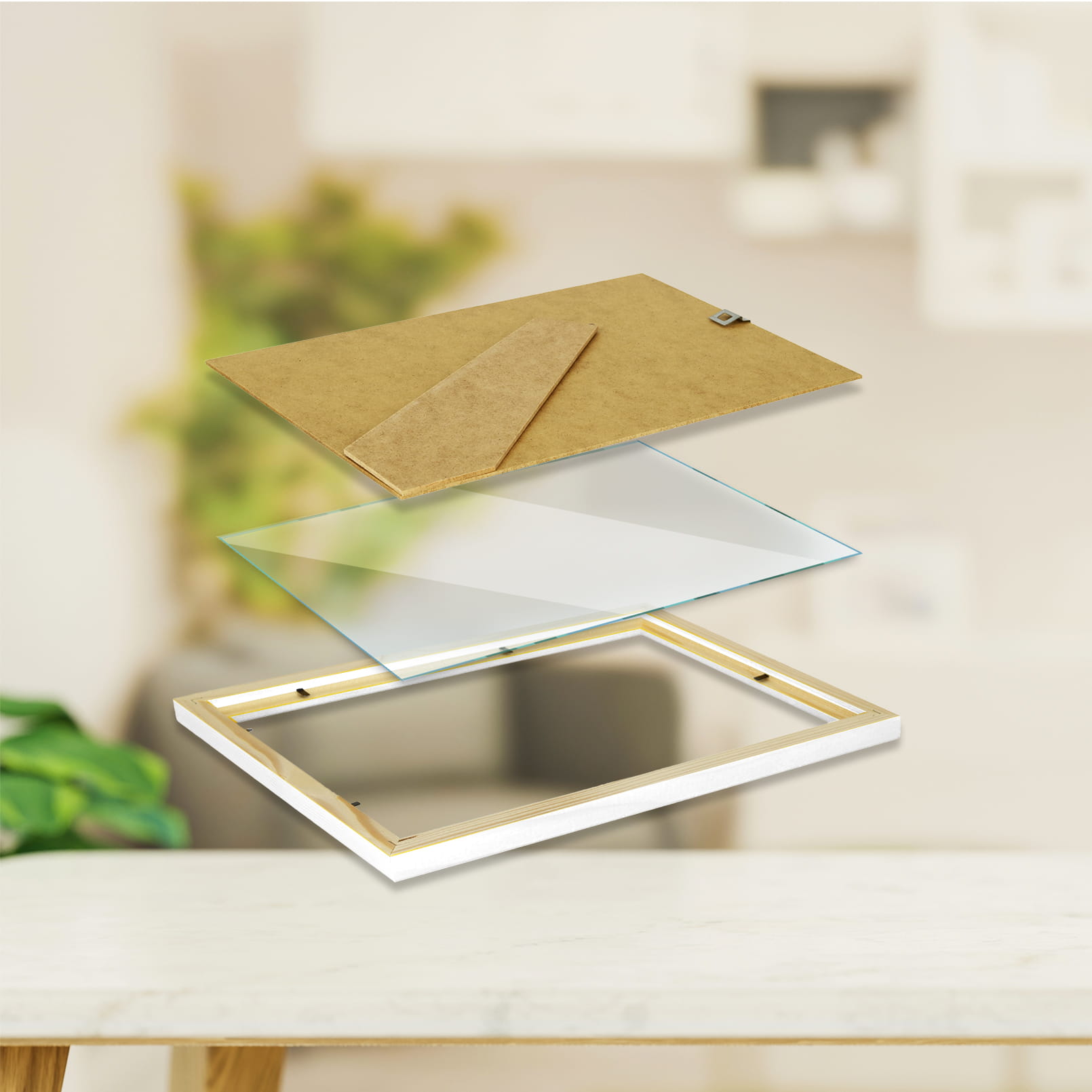 Ramka w kolorze białym wykonana jest z wysokiej jakości, naturalnego drewna. Odporna na uszkodzenia, nie tłukąca plexi zastępuje tradycyjną szybkę, co wydłuża żywotność ramki. Tył ramki wyposażony jest w płytę HDF o grubości 2,5 mm oraz wyprofilowaną stopę która umożliwia ustawienie ramki w pionie lub poziomie. Dodatkowo do ramki dołączona jest zawieszka, dzięki której ramkę można również powiesić na ścianie. Ramka idealnie sprawdzi się do oprawy zdjęć i różnego rodzaju plakatów. Ekologiczna ramka, której wszystkie elementy są recyklingowe nie zanieczyszcza środowiska.