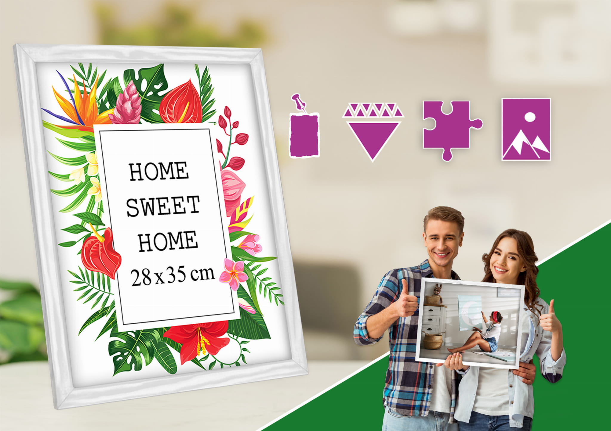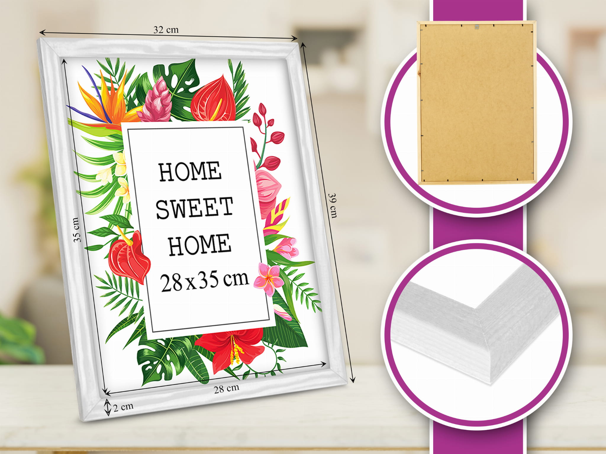 Drewniana ramka w rozmiarze 28cm x 35cm w kolorze białym.