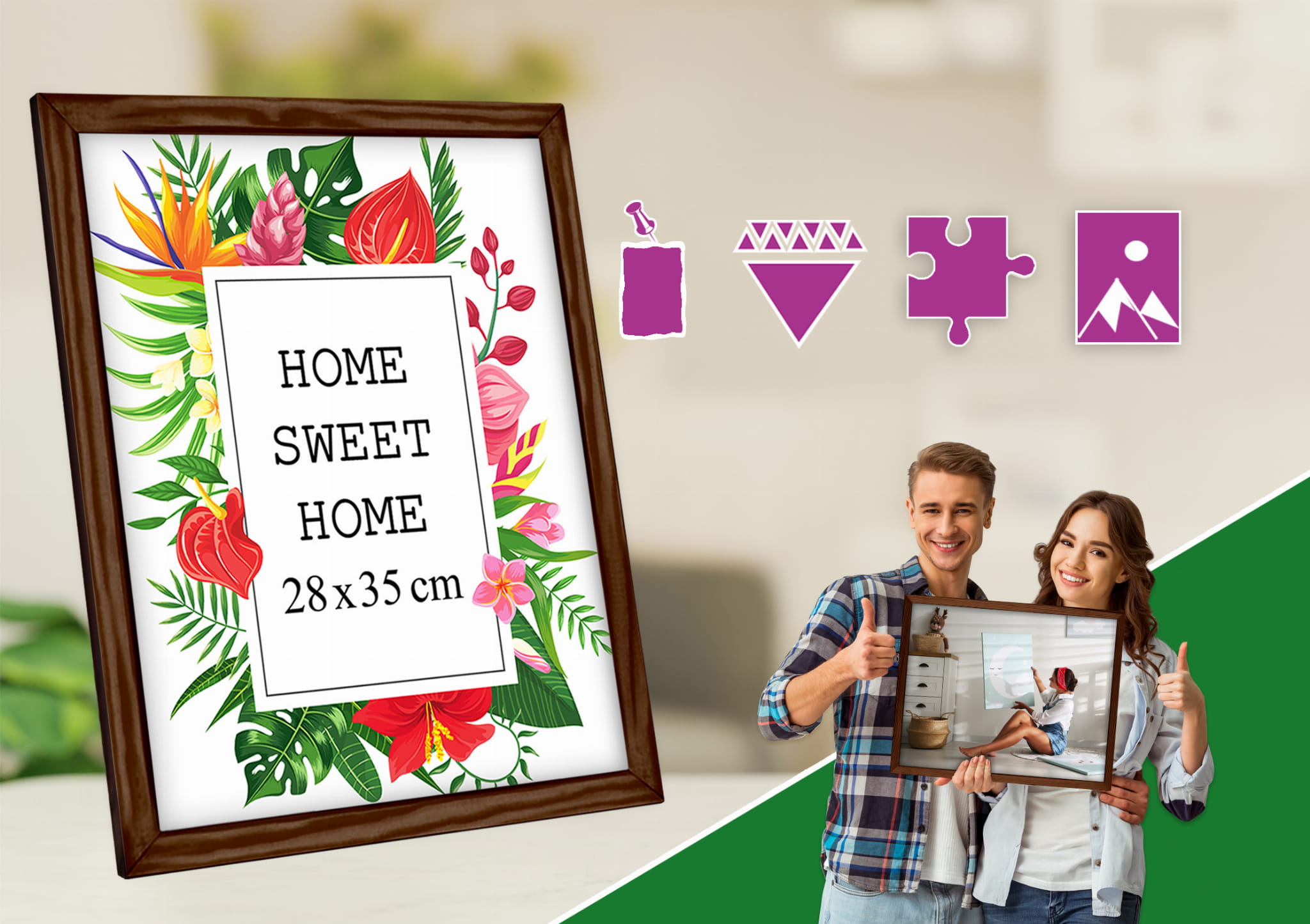 Do każdej ramki dodajemy GRATIS zawieszkę, która umożliwia powieszenie ramki na ścianie. Aby zamontować zawieszkę należy jedynie ściągnąć plecki ramki i nałożyć zawieszkę.