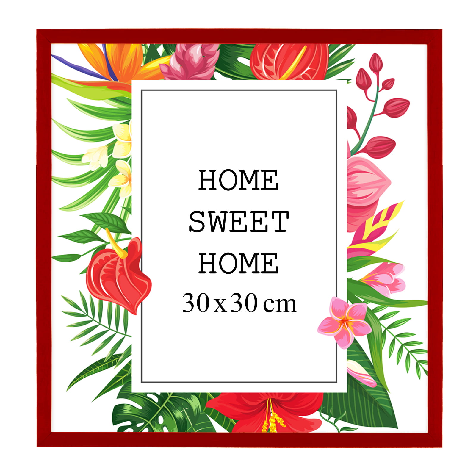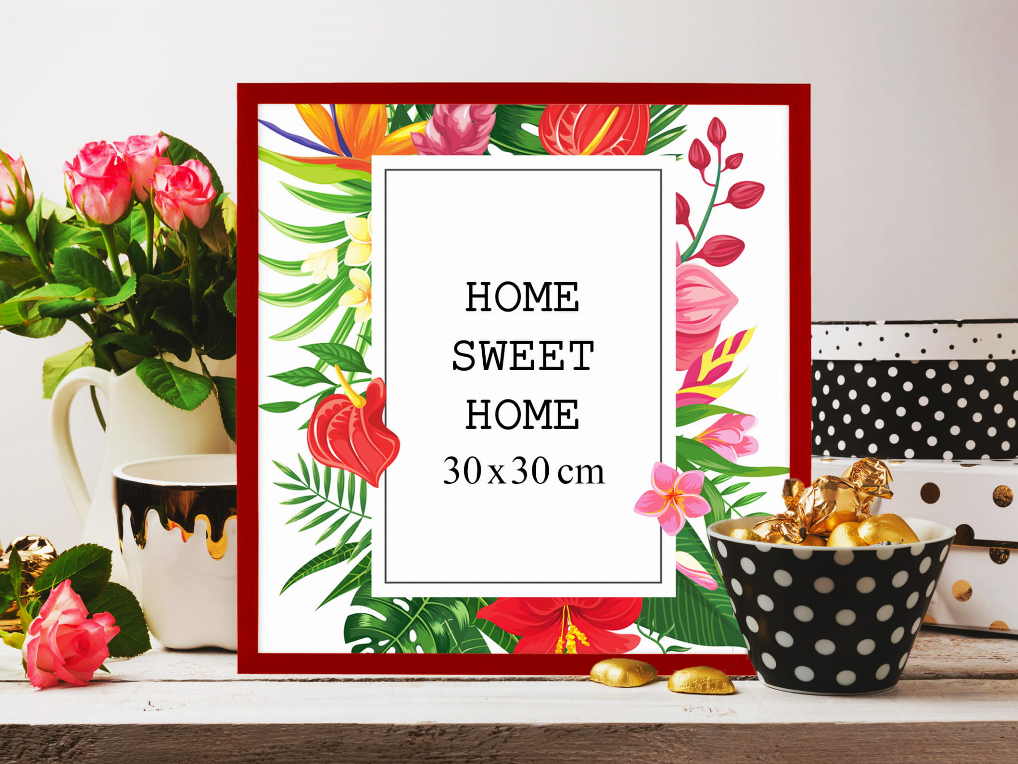 Drewniana ramka w rozmiarze 30x30 cm w kolorze czerwonym.
