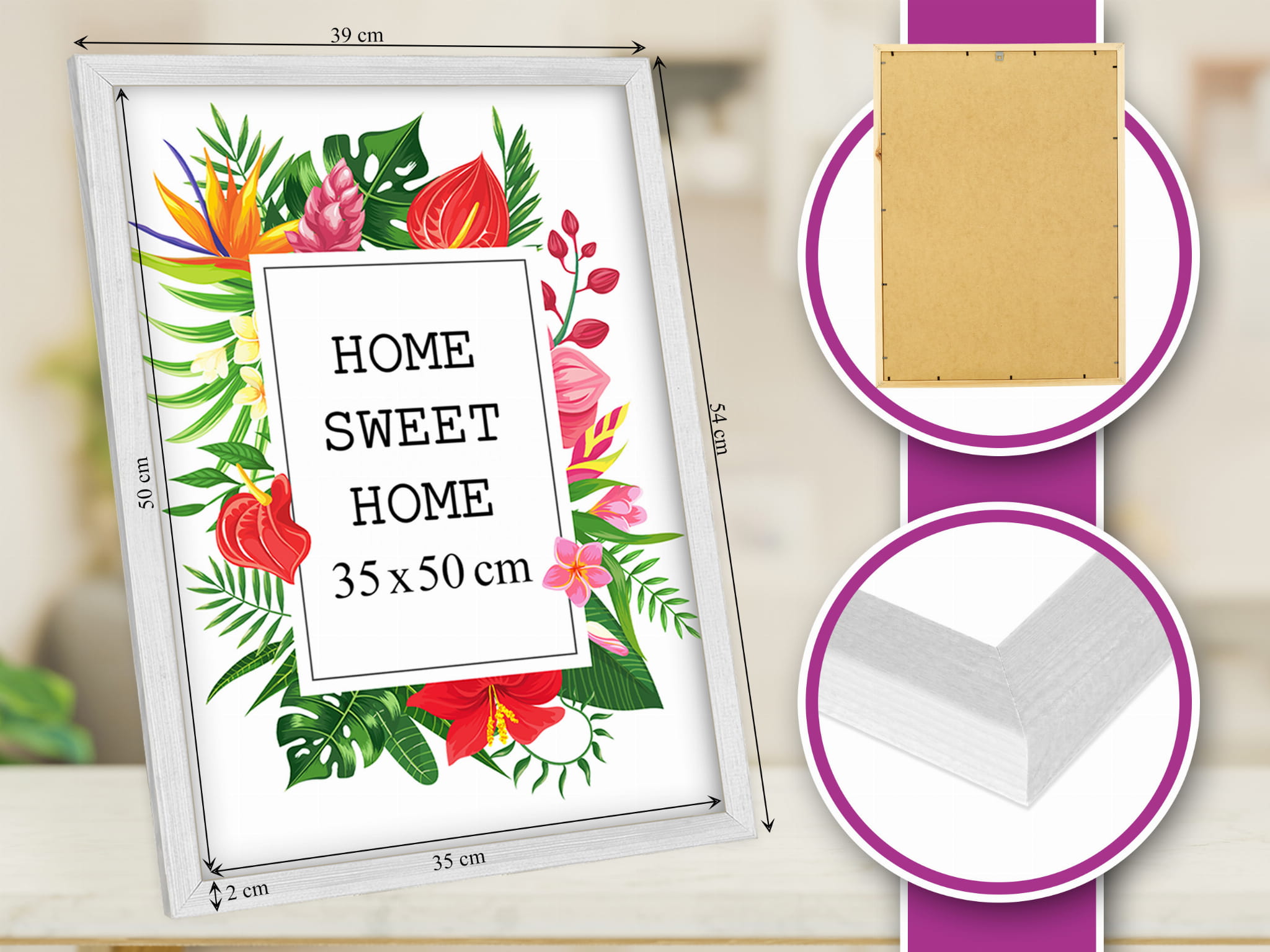 Drewniana ramka w rozmiarze 35cmx50cm w kolorze białym.