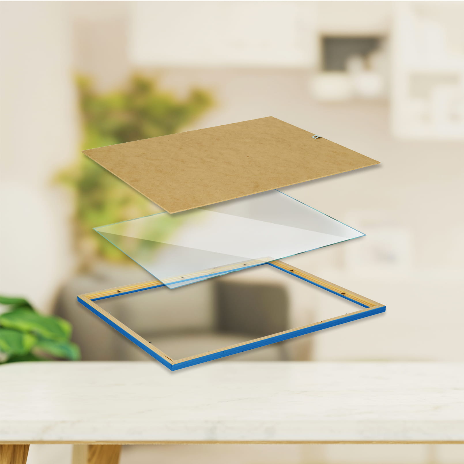 Ramka w kolorze niebieskim wykonana jest z wysokiej jakości, naturalnego drewna. Odporna na uszkodzenia, nie tłukąca plexi zastępuje tradycyjną szybkę, co wydłuża żywotność ramki. Tył ramki wyposażony jest w płytę HDF o grubości 2,5 mm, dodatkowo do ramki dołączona jest zawieszka, dzięki której ramkę można również powiesić na ścianie. Ramka idealnie sprawdzi się do oprawy zdjęć i różnego rodzaju plakatów. Ekologiczna ramka, której wszystkie elementy są recyklingowe nie zanieczyszcza środowiska.
