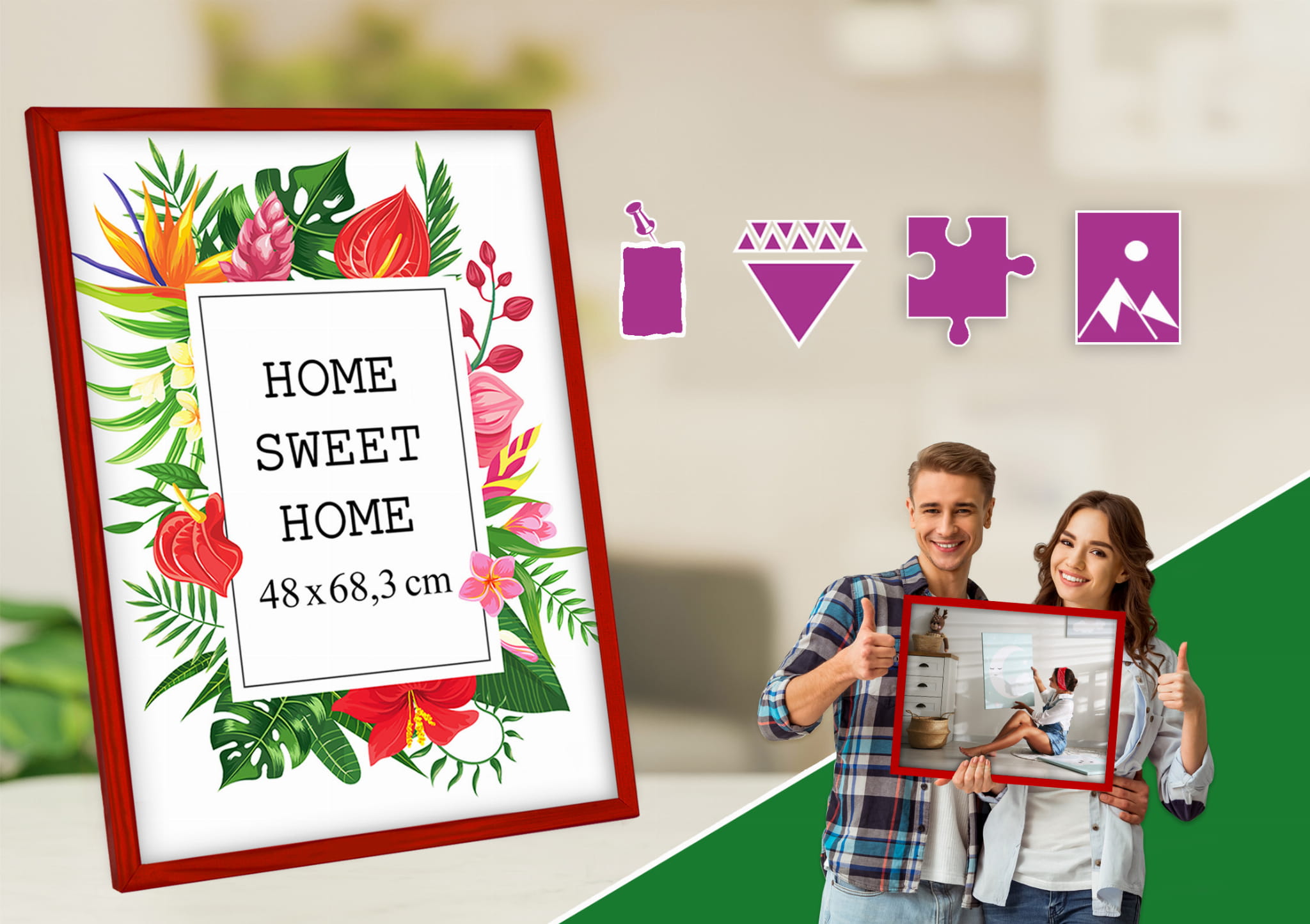 Do każdej ramki dodajemy GRATIS zawieszkę, która umożliwia powieszenie ramki na ścianie. Aby zamontować zawieszkę należy jedynie ściągnąć plecki ramki i nałożyć zawieszkę.