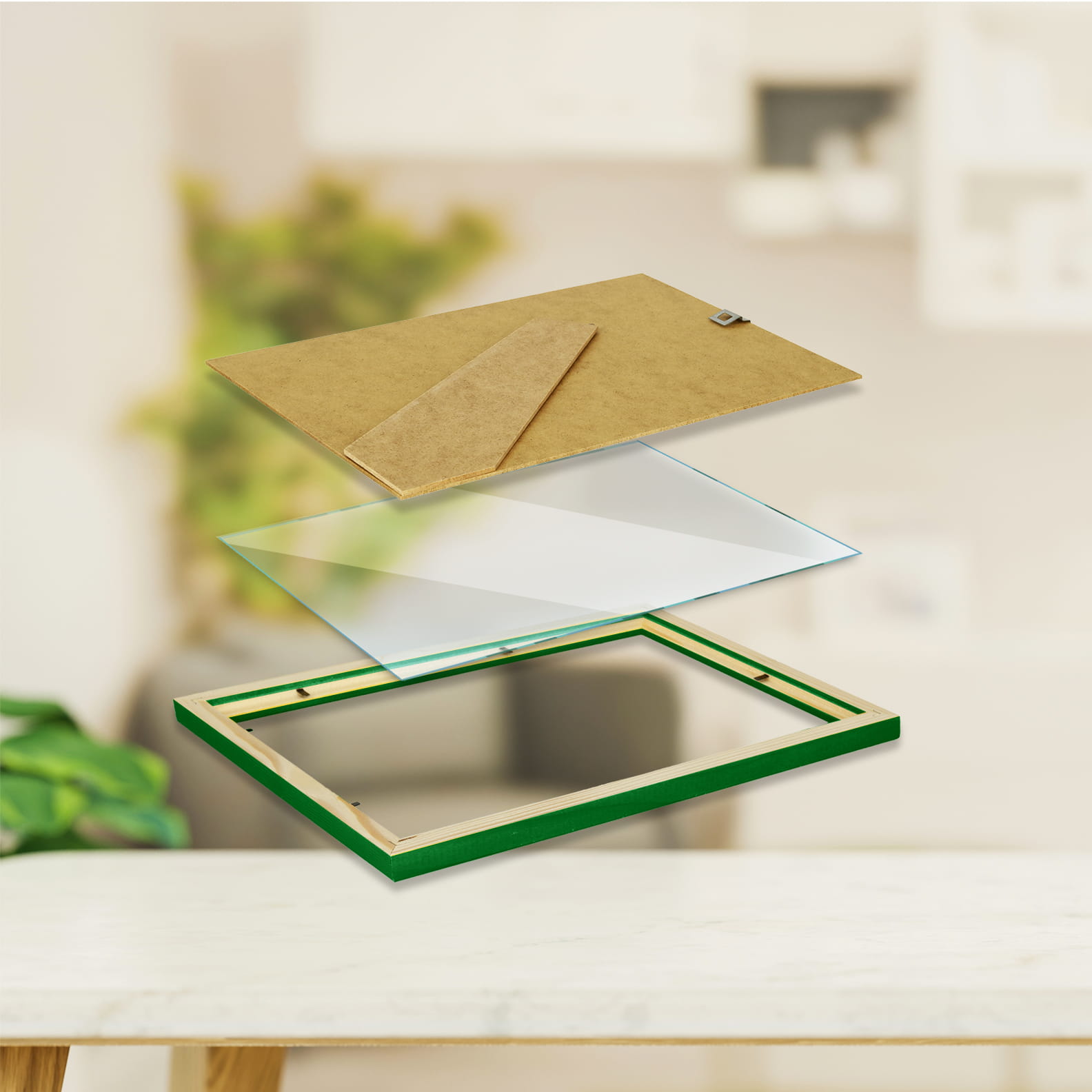 Ramka w kolorze zielonym wykonana jest z wysokiej jakości, naturalnego drewna. Odporna na uszkodzenia, nie tłukąca plexi zastępuje tradycyjną szybkę, co wydłuża żywotność ramki. Tył ramki wyposażony jest w płytę HDF o grubości 2,5 mm oraz wyprofilowaną stopę która umożliwia ustawienie ramki w pionie lub poziomie. Dodatkowo do ramki dołączona jest zawieszka, dzięki której ramkę można również powiesić na ścianie. Ramka idealnie sprawdzi się do oprawy zdjęć i różnego rodzaju plakatów. Ekologiczna ramka, której wszystkie elementy są recyklingowe nie zanieczyszcza środowiska.al.