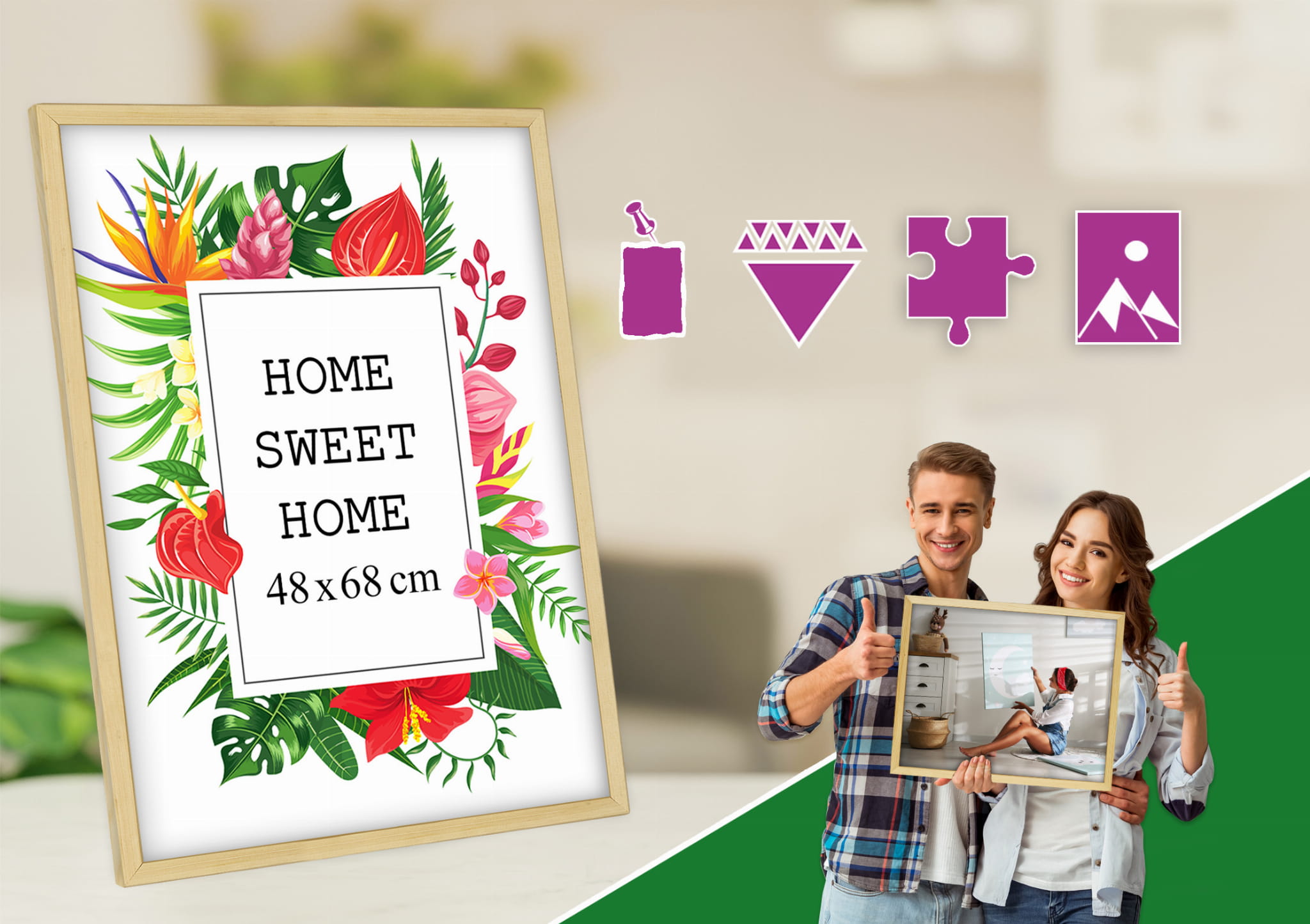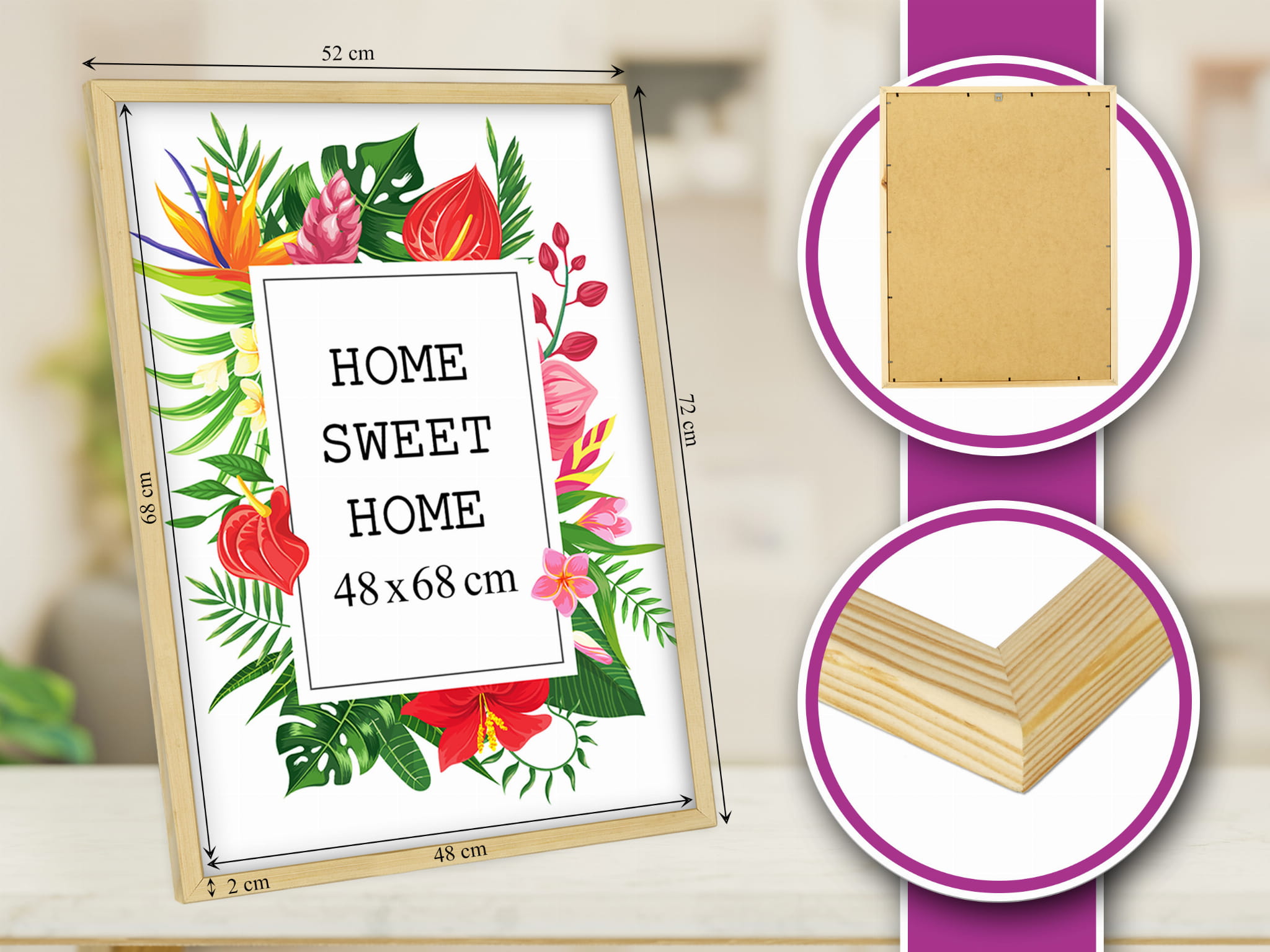 Drewniana ramka w rozmiarze 48cmx68cm w kolorze naturalnym.