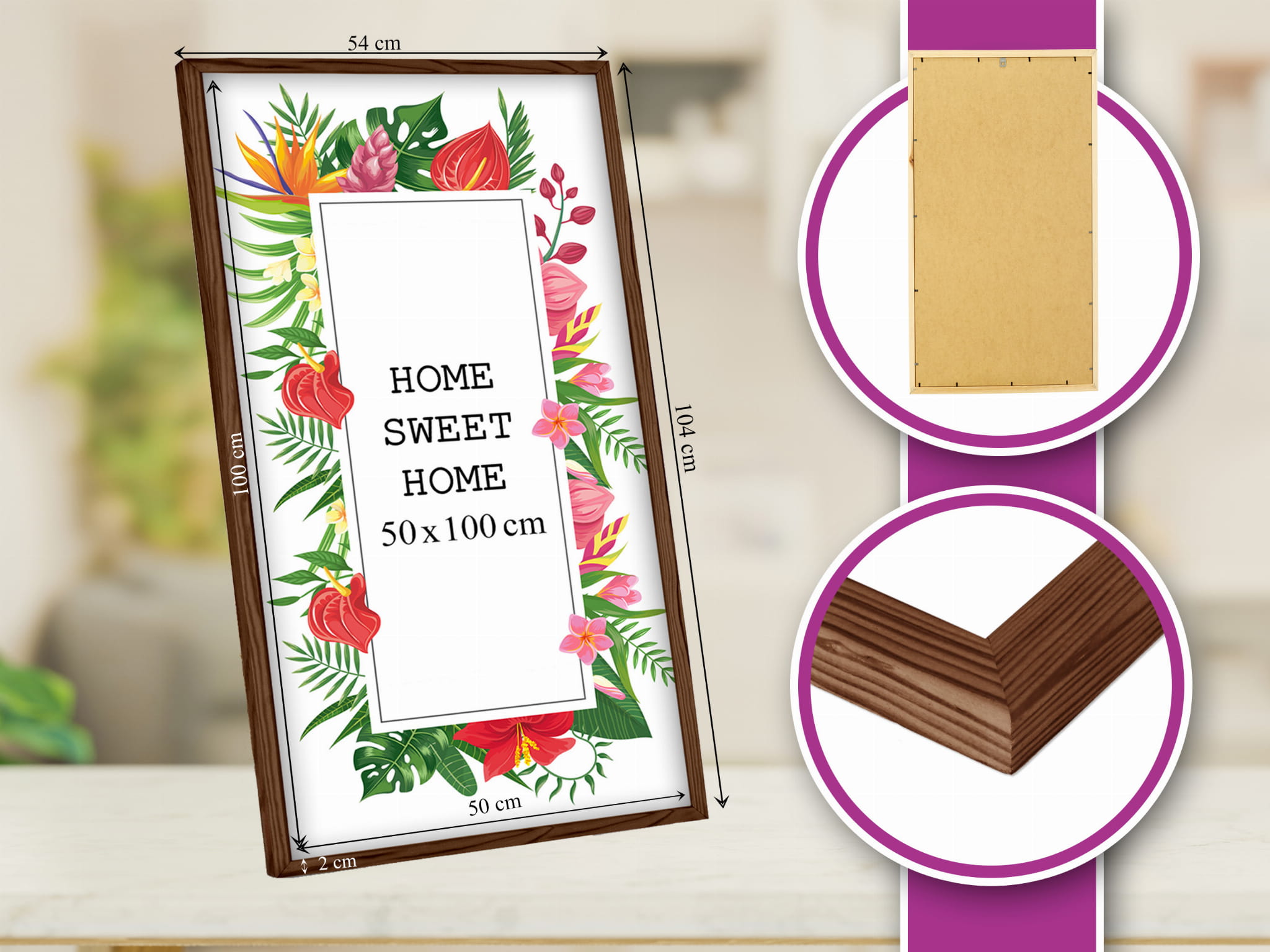 Drewniana ramka w rozmiarze 50x100 cm w kolorze brązowym.