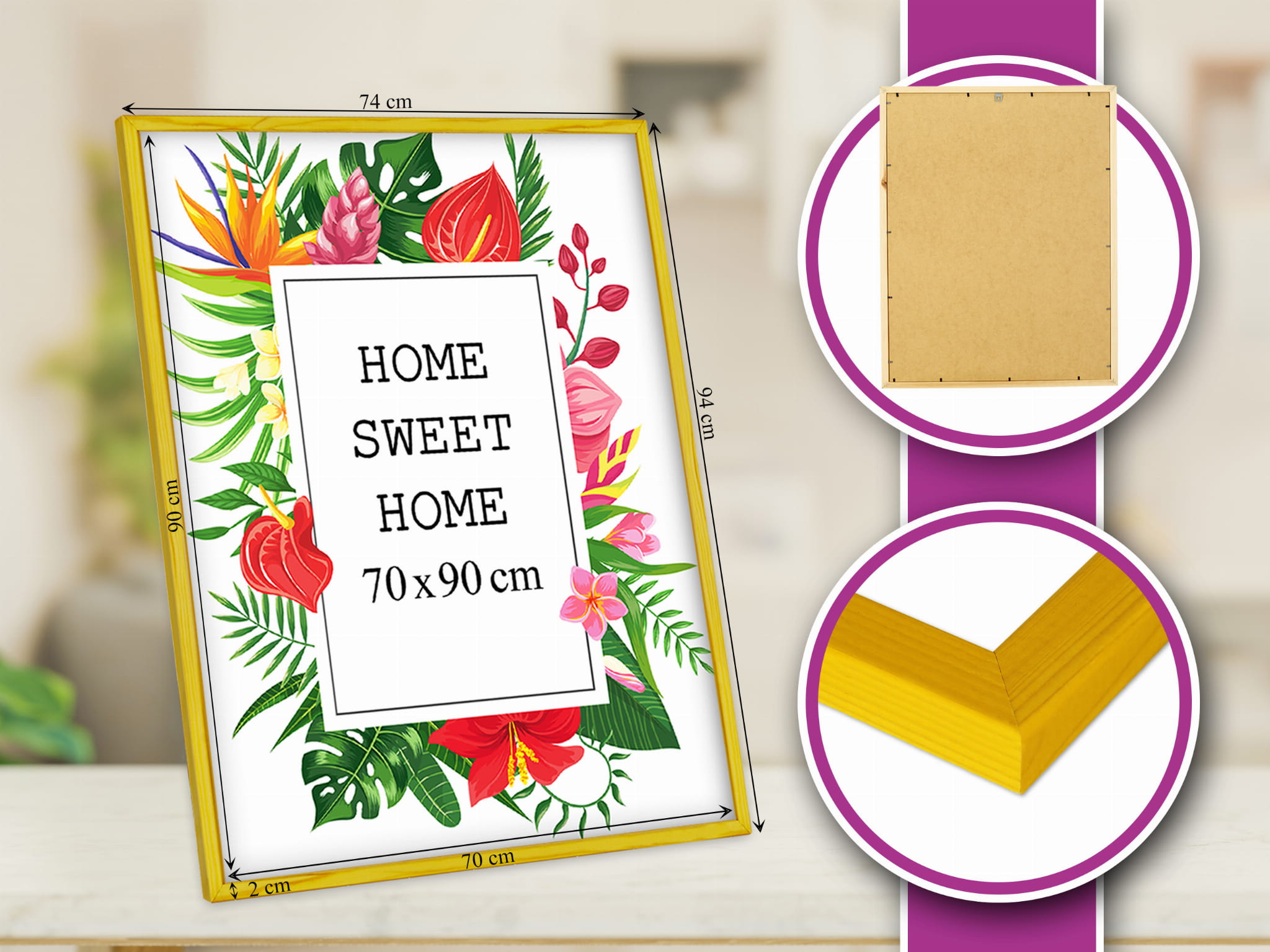 Ramka na zdjęcia 70x90 cm, drewniana w kolorze żółtym