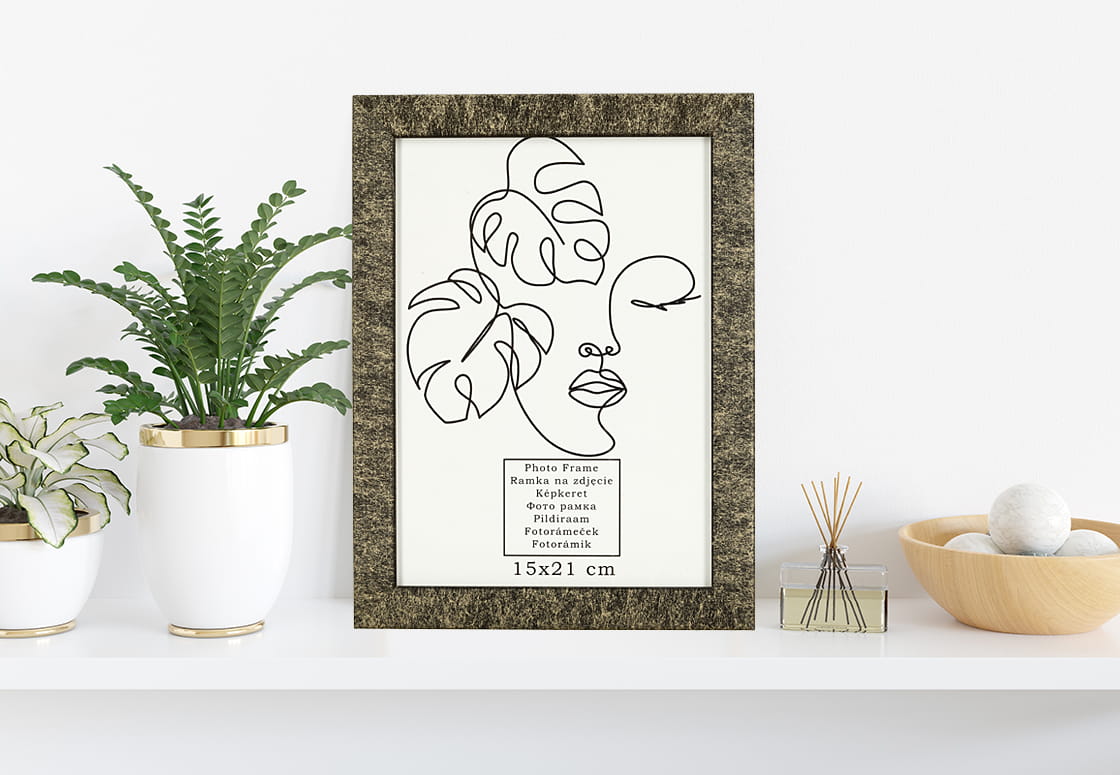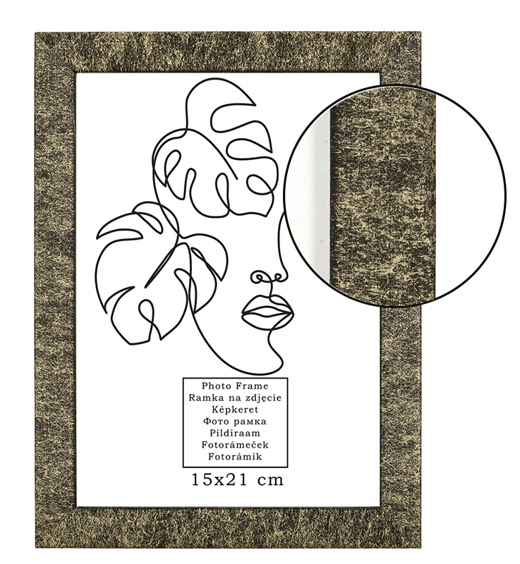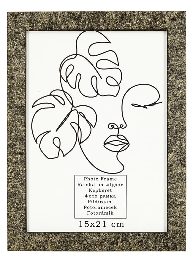 Ramka na zdjęcie 15x21 cm, drewniana, złota, ze wzorem marmuru