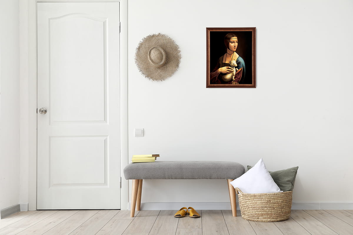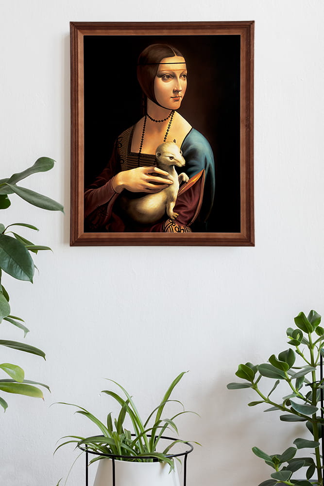Reprodukcja obrazu w drewnianej ramie o wymiarach 40x50 cm - Dama z łasiczką, Leonardo da Vinci