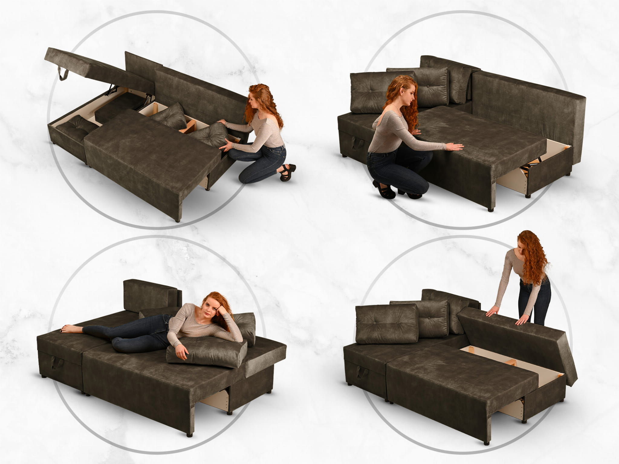 Wygodne miejsce do siedzenia w ciągu dnia wieczorem zamienia się w przytulne łóżko, a dodatkowe pojemniki na pościel pozwalają zachować porządek w salonie.