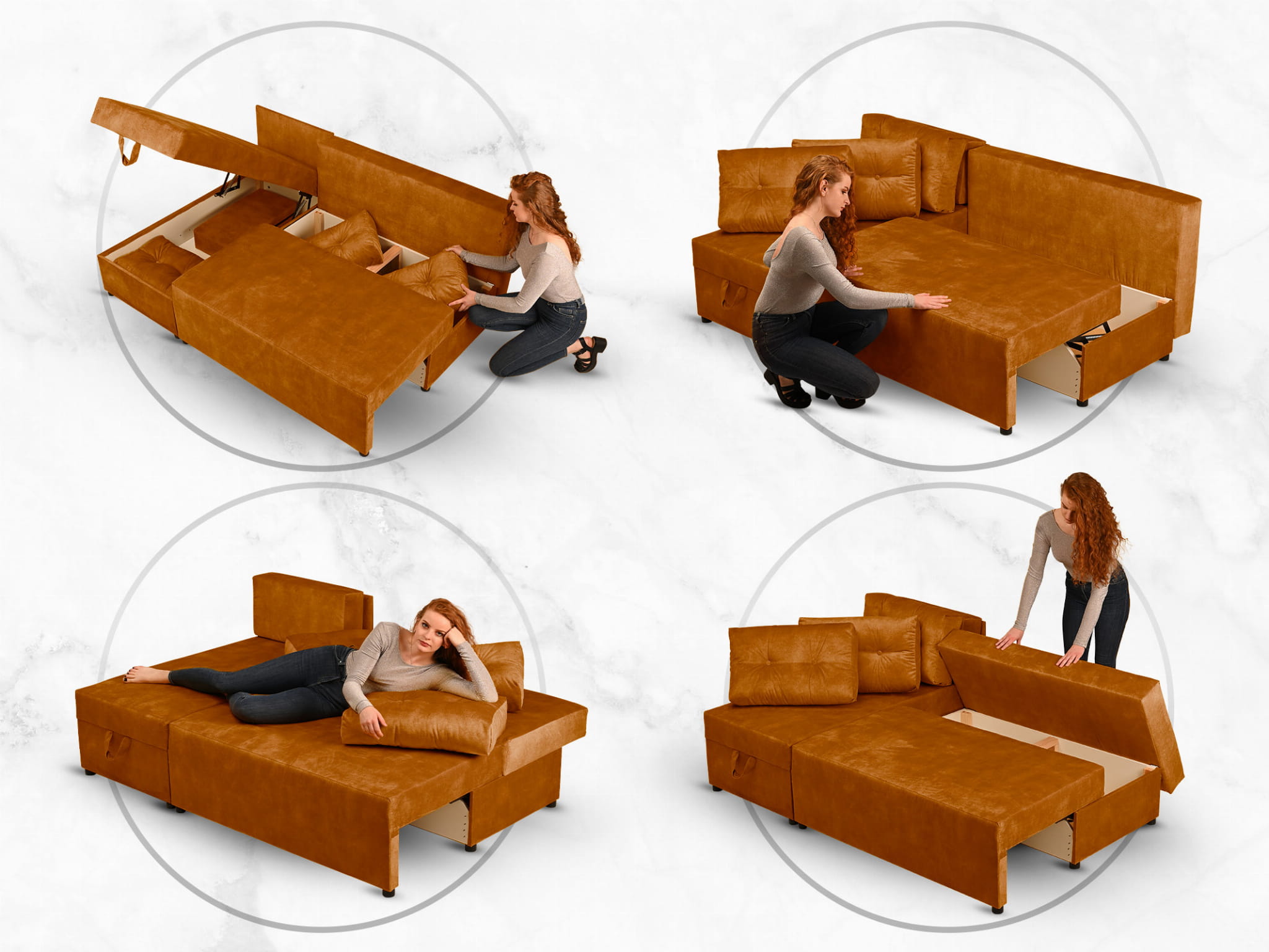 Wygodne miejsce do siedzenia w ciągu dnia wieczorem zamienia się w przytulne łóżko, a dodatkowe pojemniki na pościel pozwalają zachować porządek w salonie.