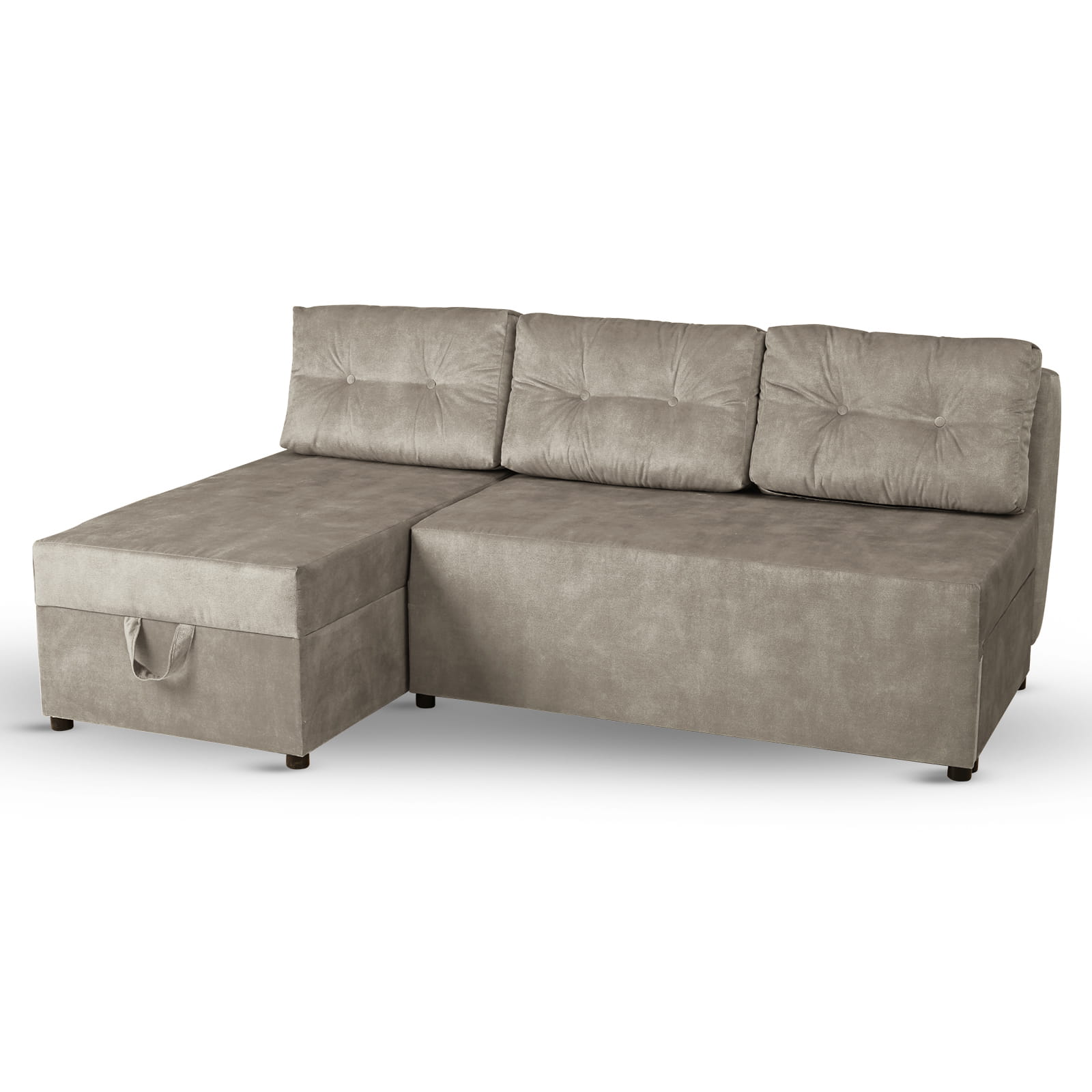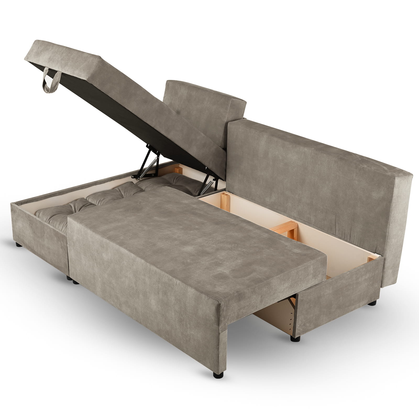 Rozkładany narożnik ALAN lewy z welurowej tkaniny w kolorze szarym z funkcją spania i dwoma pojemnikami na pościel