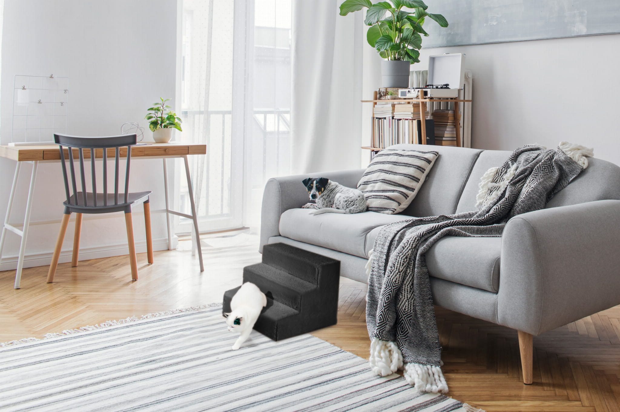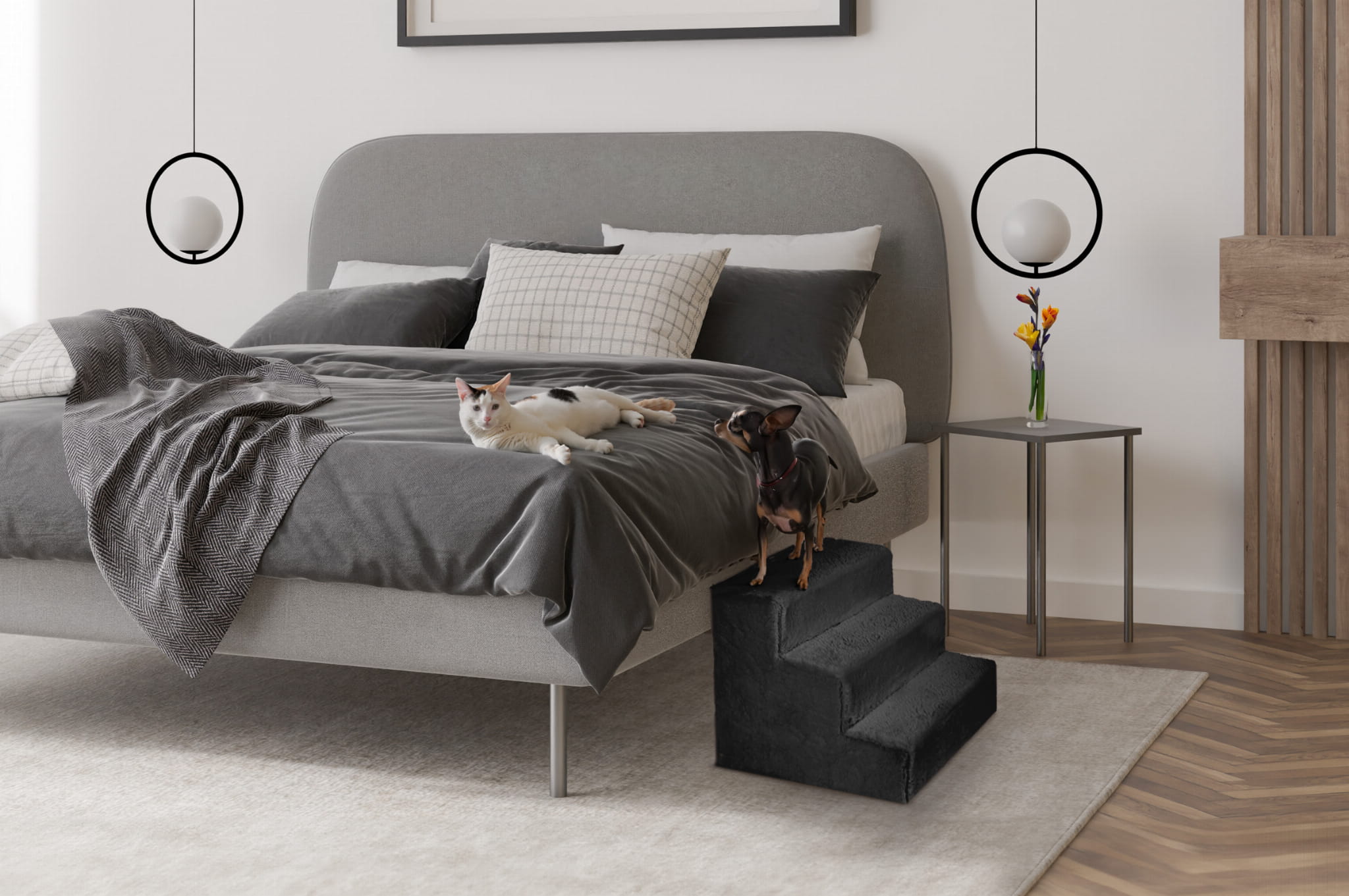 Zapewniają łatwiejszy dostęp do wyżej położonych miejsc. Schodki są idealne dla szczeniaków, małych psów i kotów, pomagając w ochronie delikatnych kości, bioder i stawu skokowego.