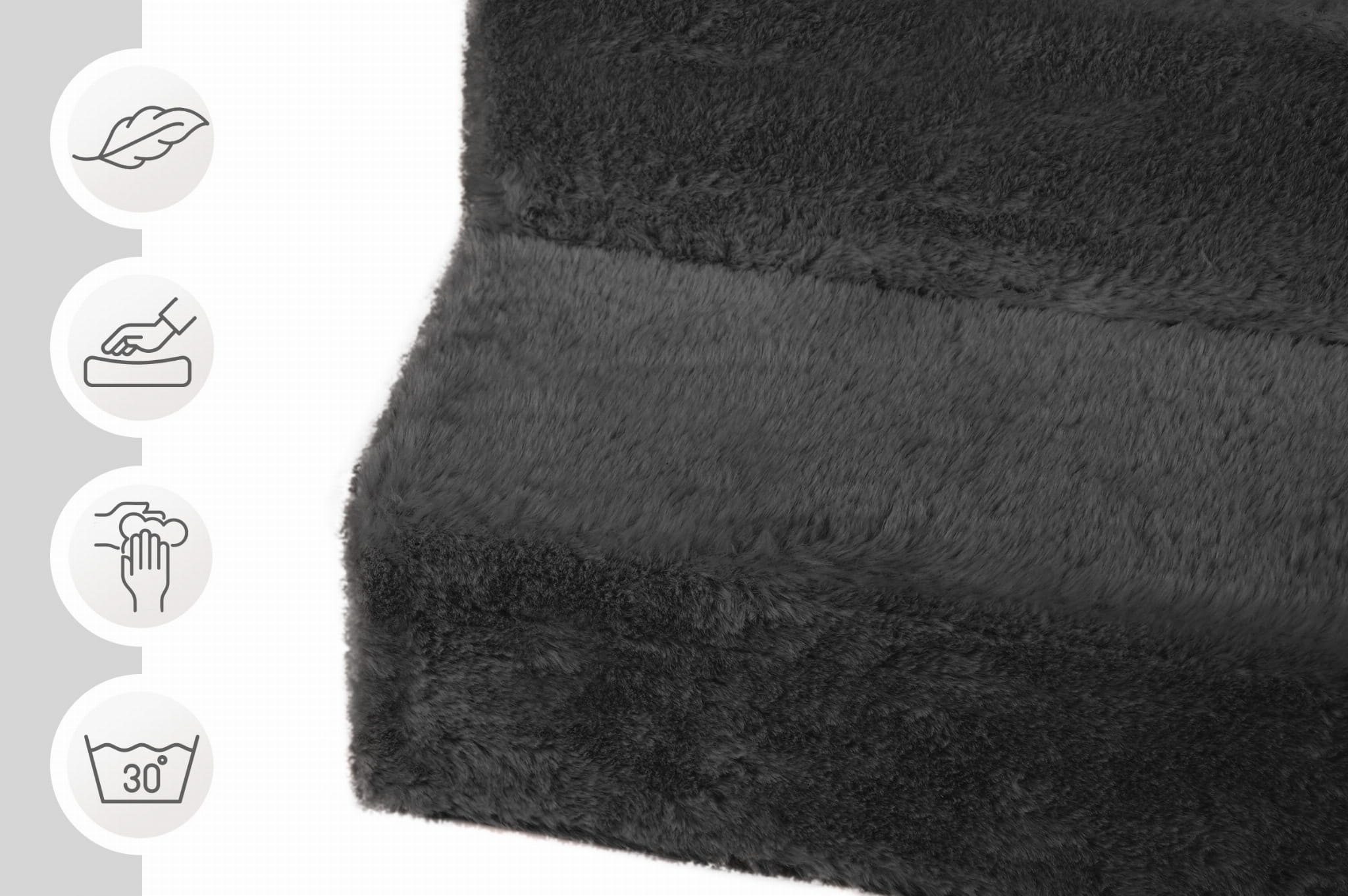 - Tkanina – przyjemna w dotyku imitacja futra w wielu kolorach do wyboru.