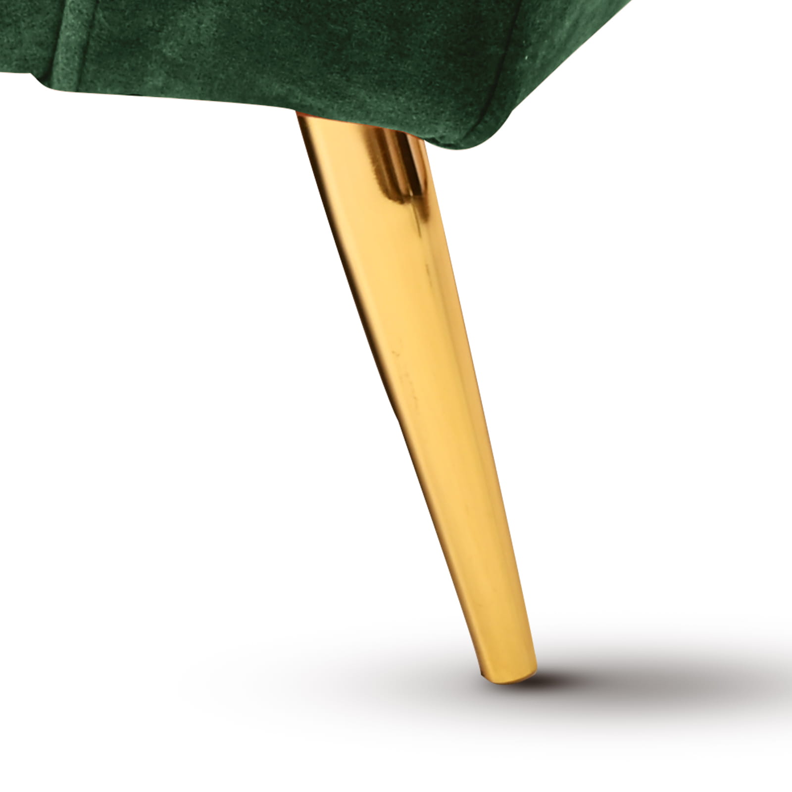 Sofa Lara z welurowej tkaniny w kolorze zielonym z przeszyciami i złotymi nogami