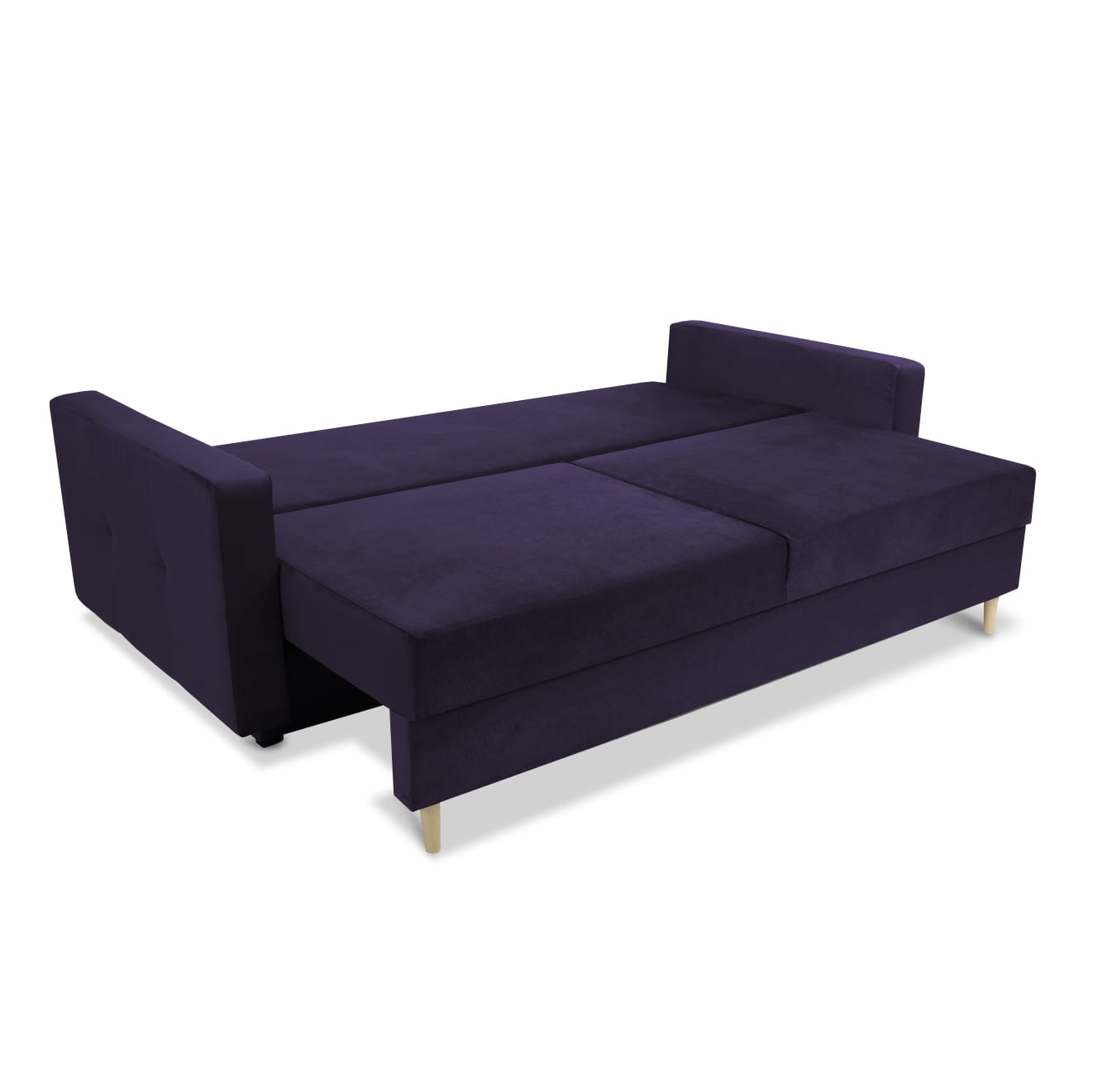 Sofa STELLA w kolorze fioletowym z funkcją spania i pojemnikiem na pościel