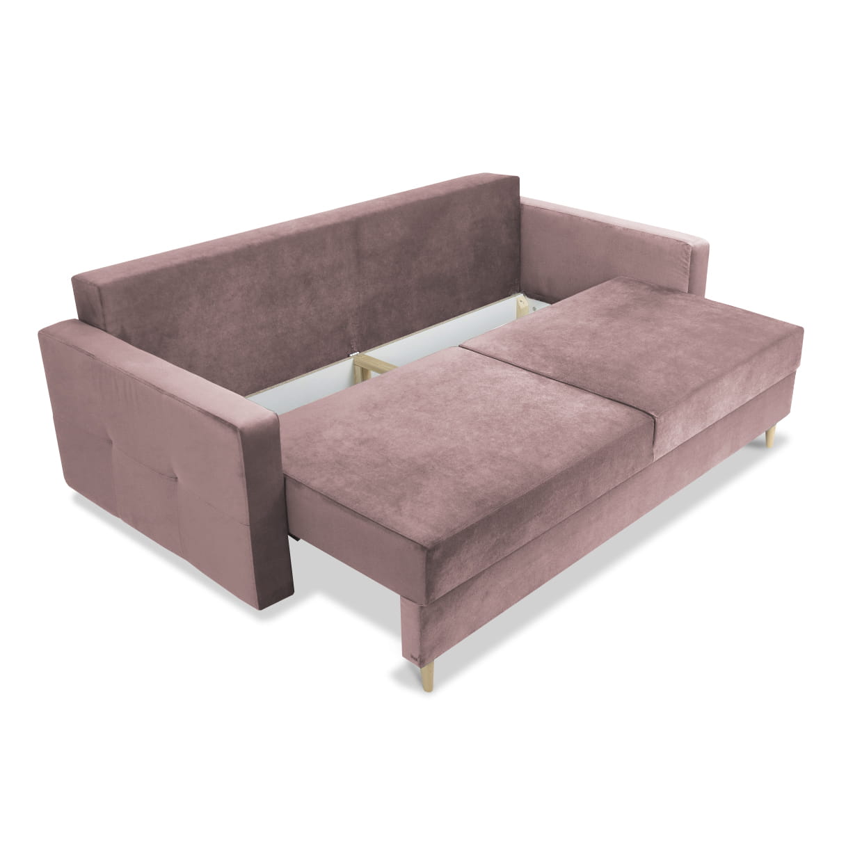 Sofa STELLA w kolorze różowym z funkcją spania i pojemnikiem na pościel