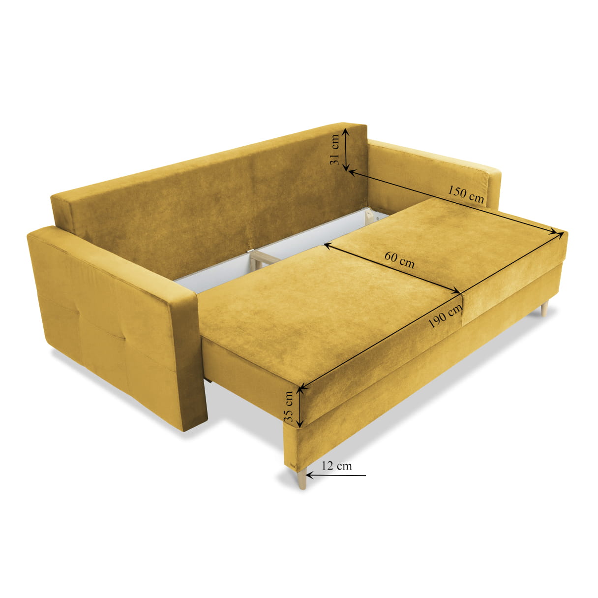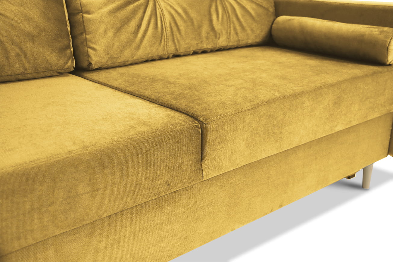 Sofa STELLA w kolorze żółtym z funkcją spania i pojemnikiem na pościel