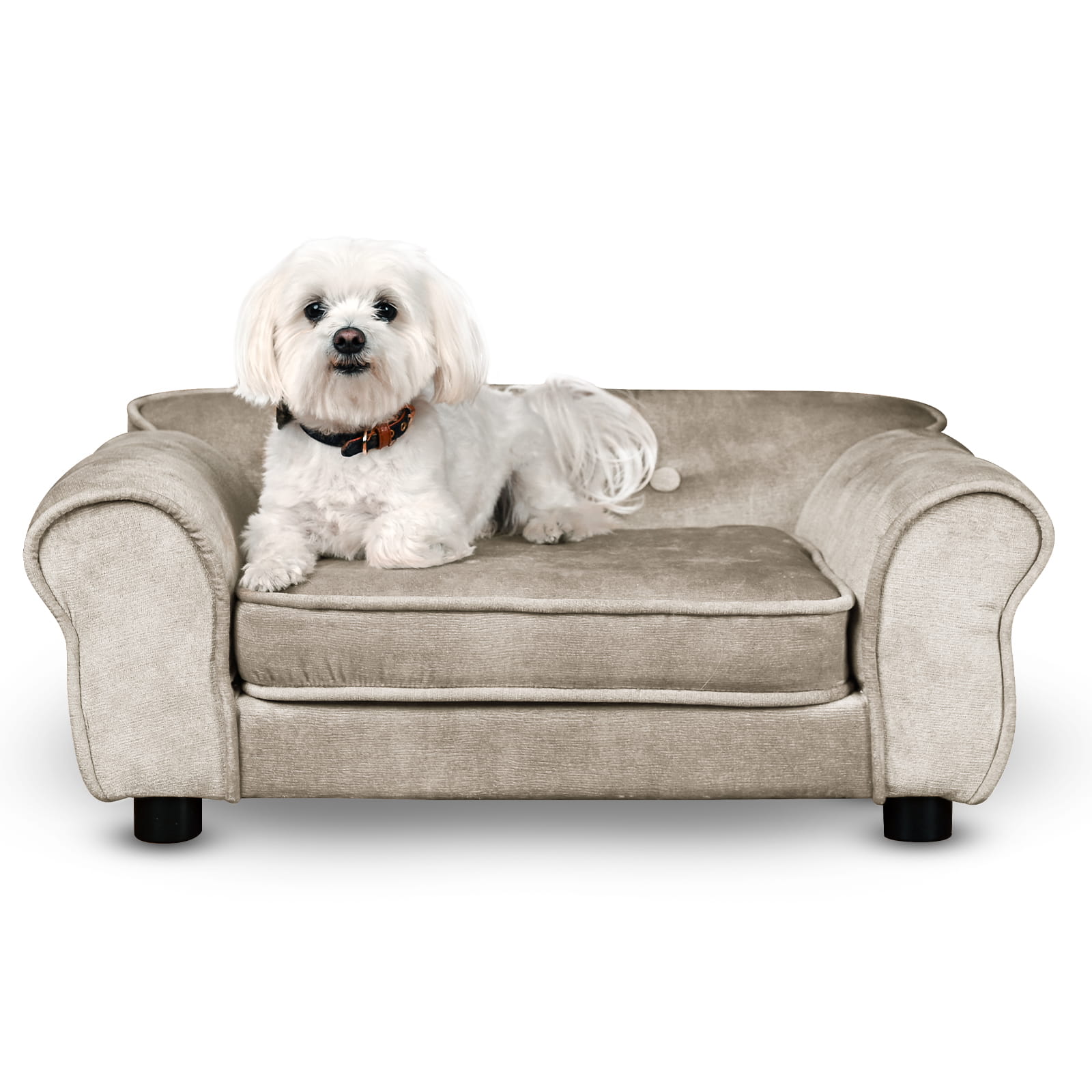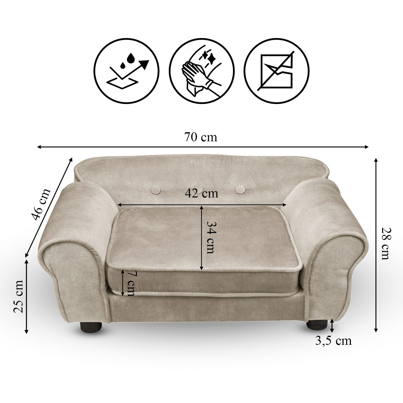 Sofa dla psa LUCY w kolorze beżowym– Kanapa dla kota, psa tapicerowana tkaniną welurową