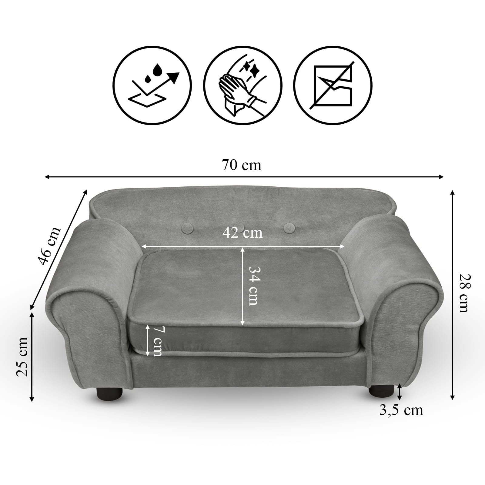 Sofa dla psa LUCY w kolorze szarym – Kanapa dla kota, psa tapicerowana tkaniną welurową