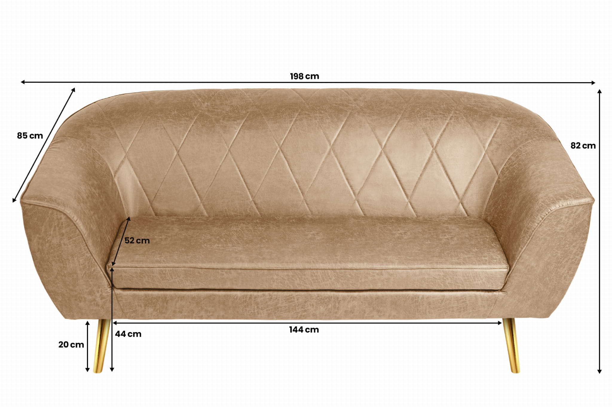 Sofa z ekoskóry ze złotymi nóżkami Rosa w kolorze beżowym z subtelnymi przeszyciami