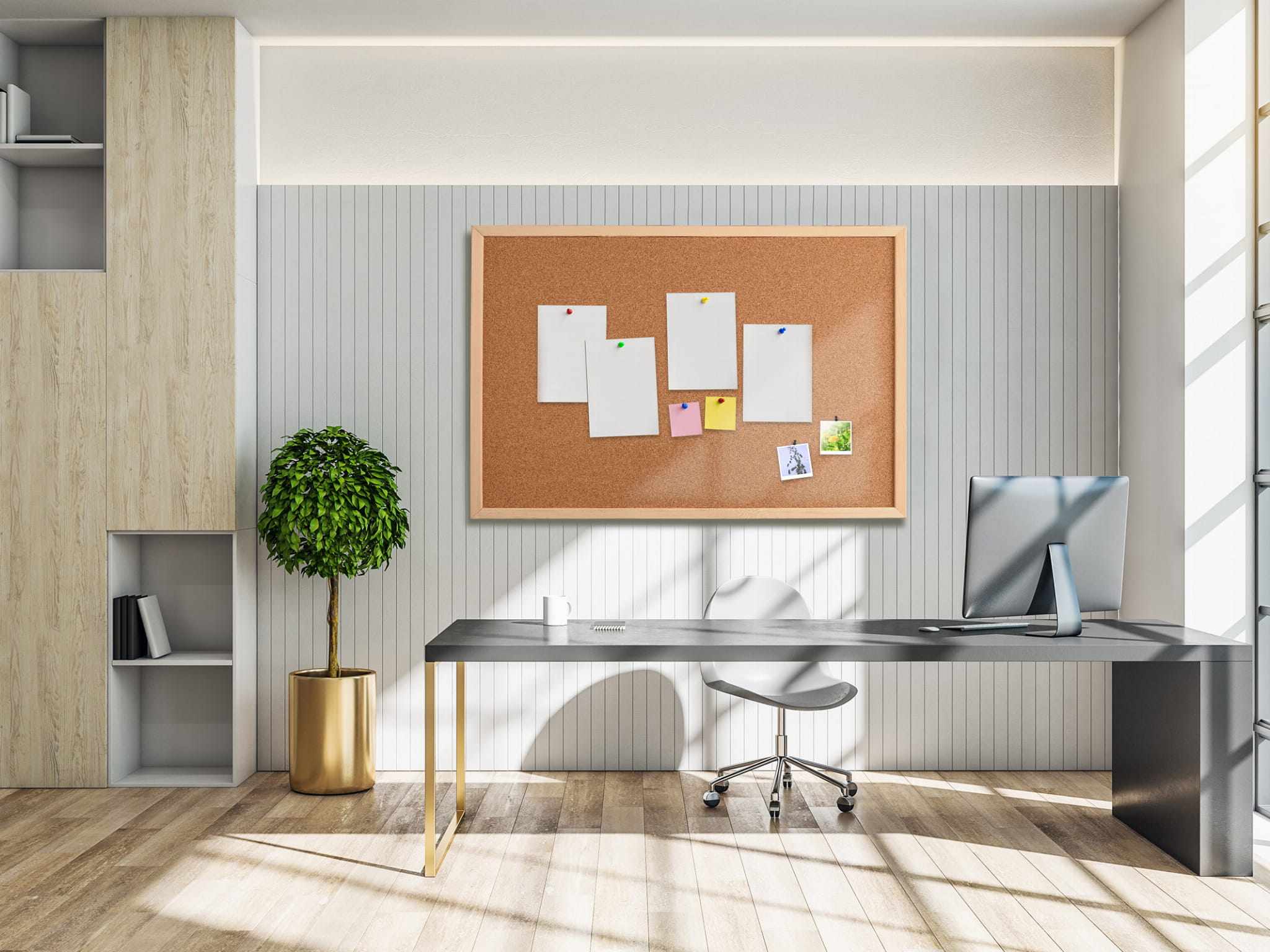 - Płyta pilśniowa – zabezpieczająca tylną stronę materiału korkowego stanowi solidne tło dla tablicy, co zwiększa jej trwałość i stabilność.