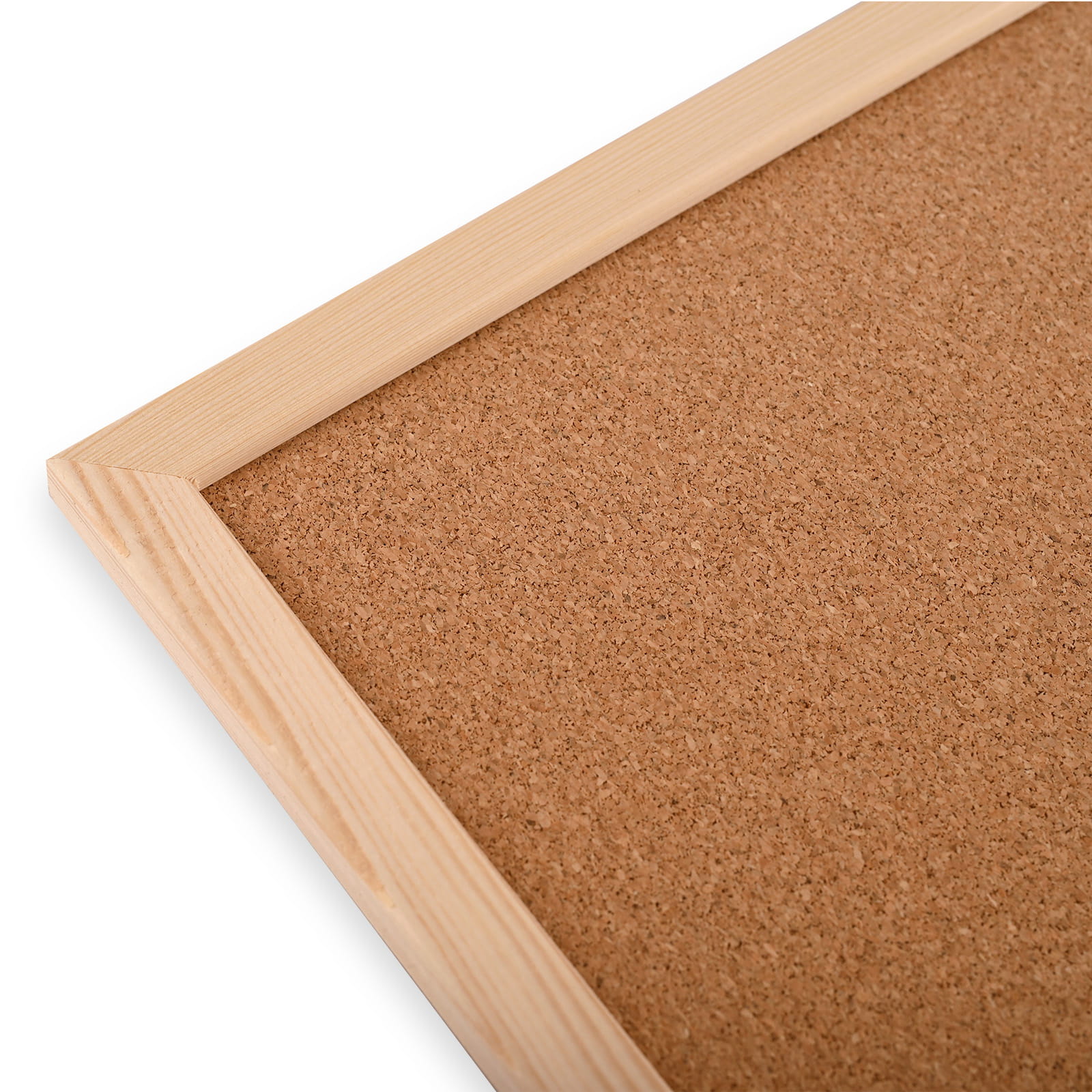 - Korek – naturalny materiał pozyskiwany z kory korkowca, zachowuje trwałość i elastyczność, dzięki czemu pinezki i zapinki nie pozostawiają trwałych śladów na powierzchni tablicy.