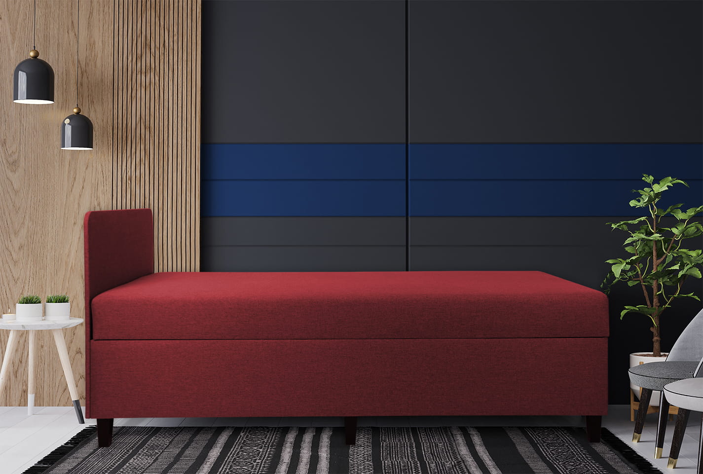 Tapczan IGOR jednoosobowy 100x200cm z pojemnikiem w kolorze bordowym