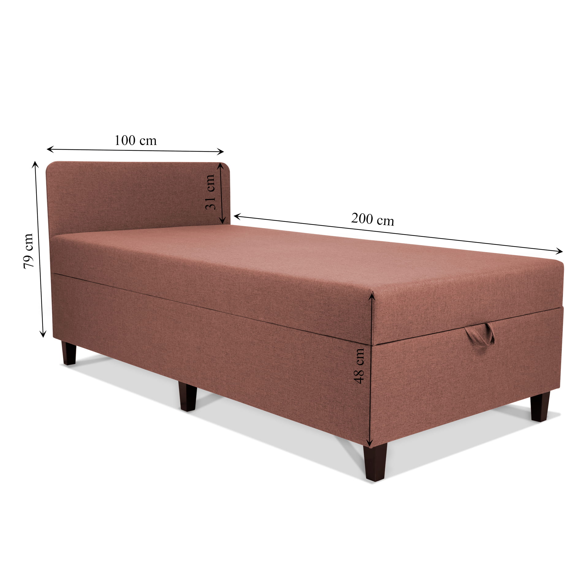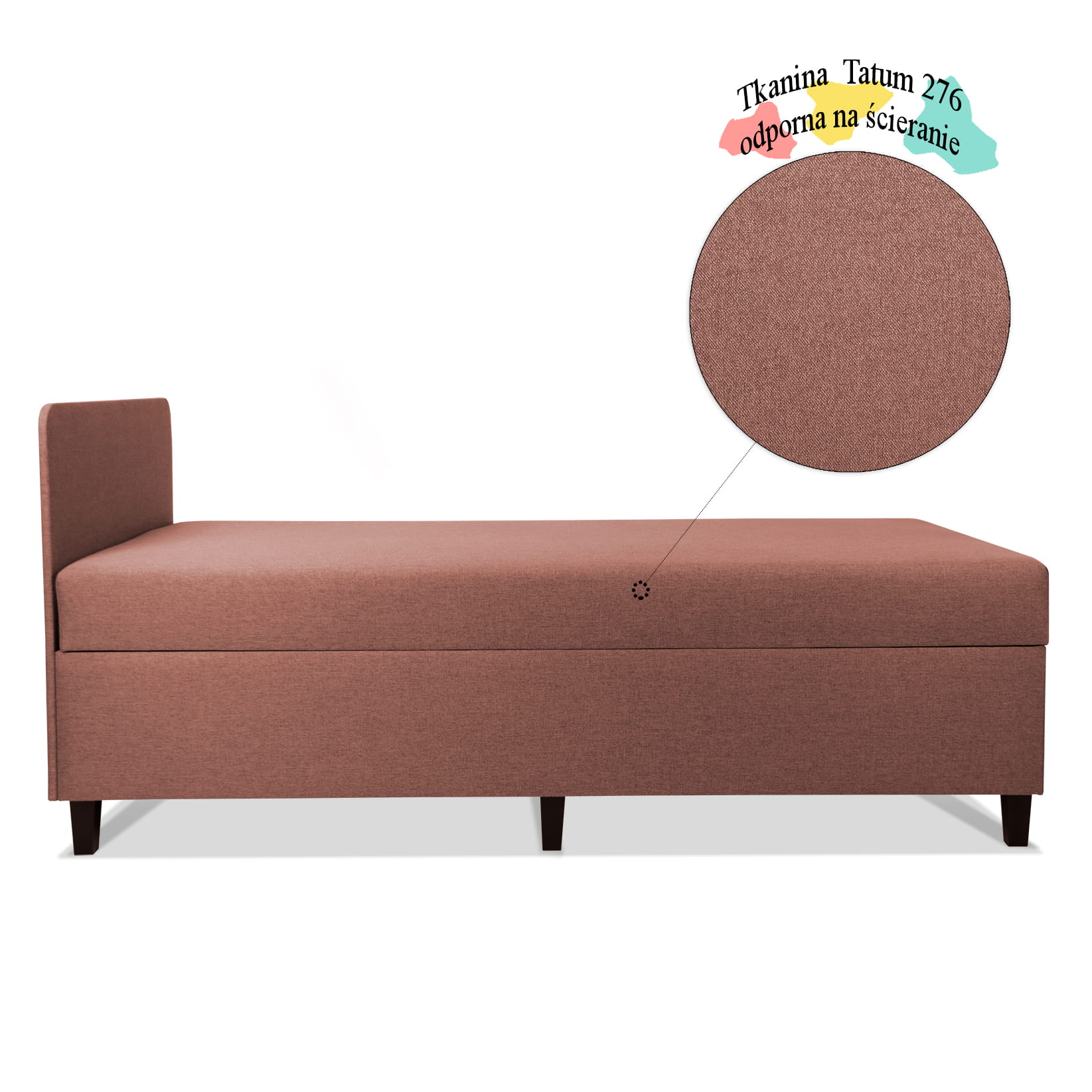 Tapczan IGOR jednoosobowy 100x200cm z pojemnikiem w kolorze jasnoróżowym
