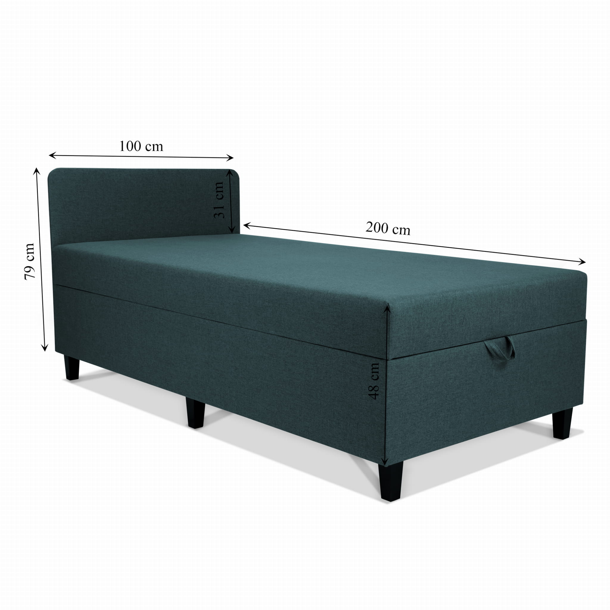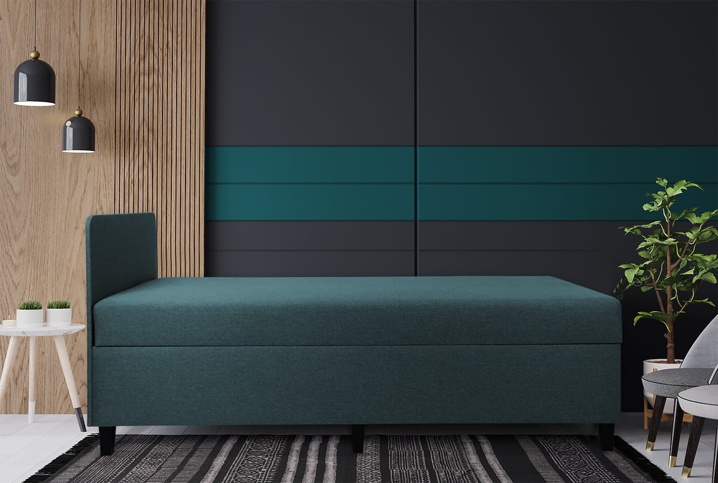 Tapczan IGOR jednoosobowy 100x200cm z pojemnikiem w kolorze morskim