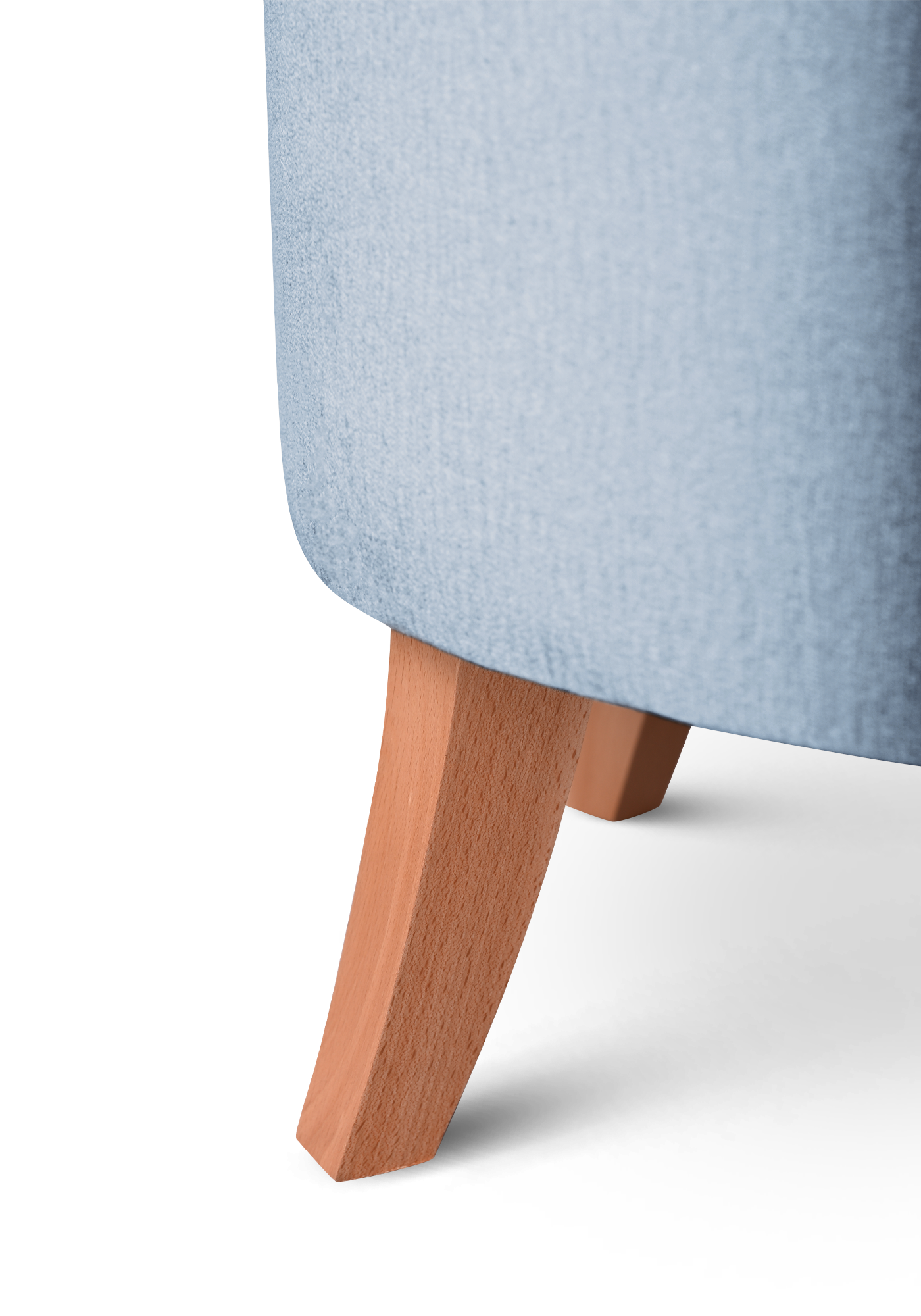 - Pufę wyposażono w drewniane nóżki w kolorze naturalnego drewna.