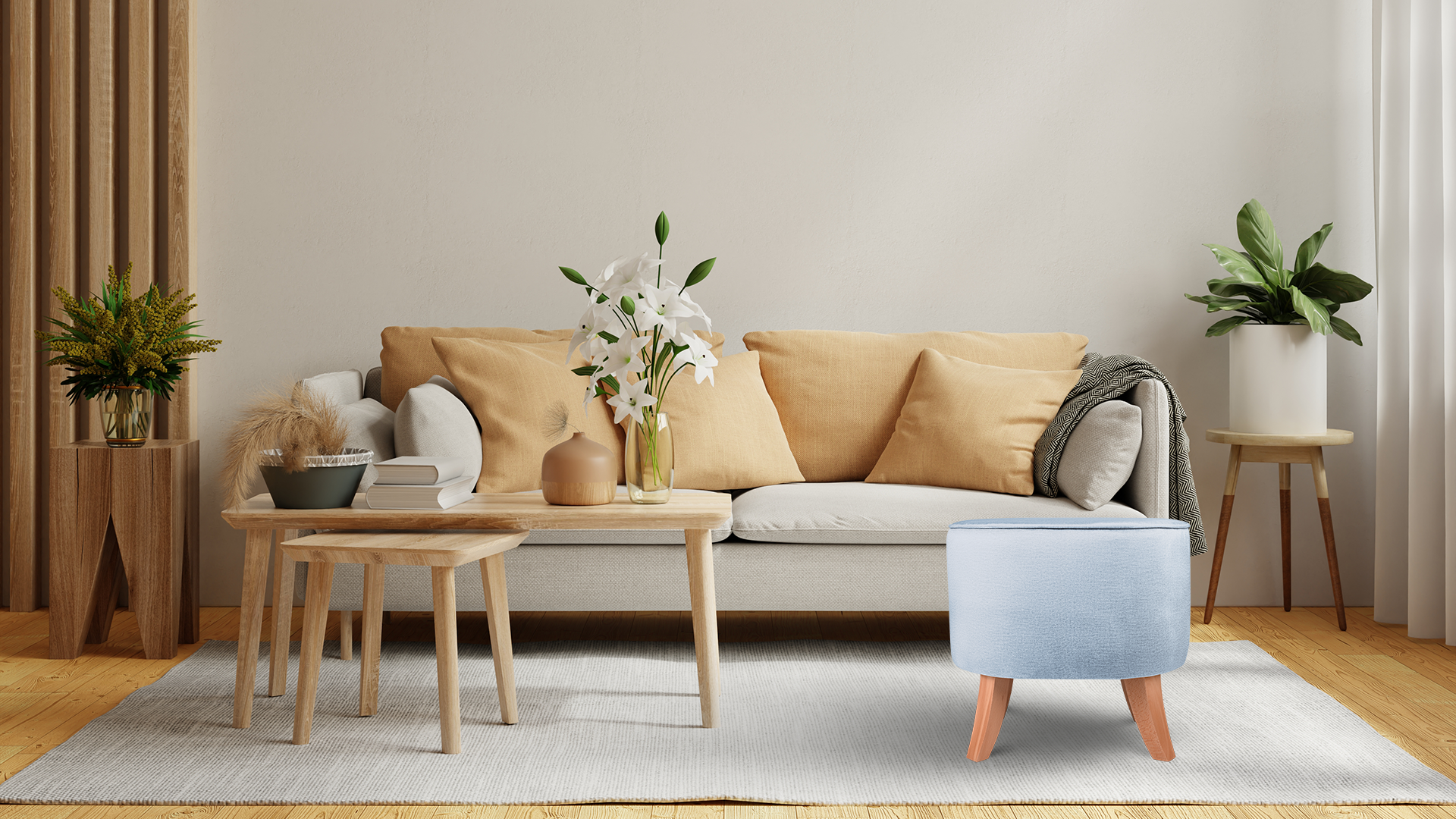- Do produkcji pufy wykorzystujemy tkaninę tapicerską Monolith 70 w kolorze jasnoniebieskim.