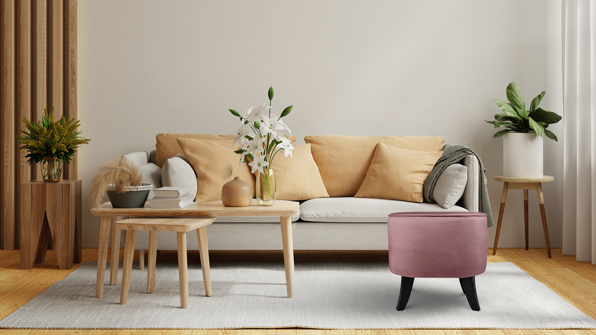 - Do produkcji pufy wykorzystujemy tkaninę tapicerską Monolith 63 w kolorze różowym.