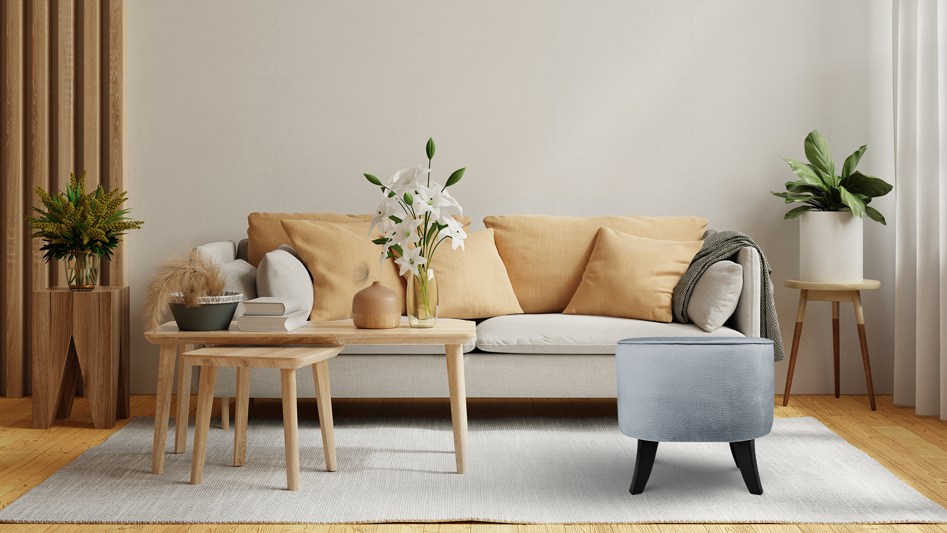 - Do produkcji pufy wykorzystujemy tkaninę tapicerską Monolith 85 w kolorze szaro-niebieskim.