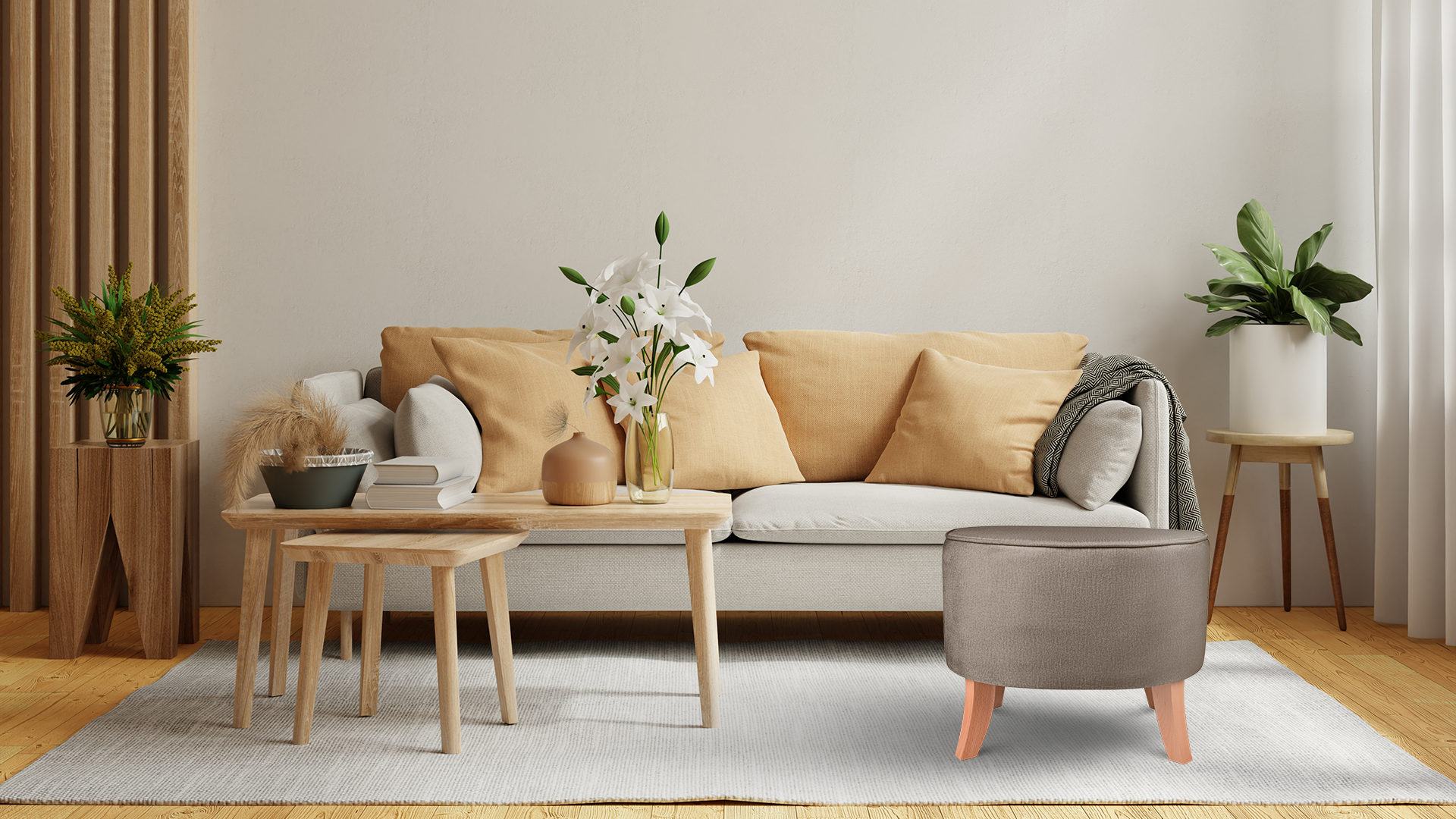 - Do produkcji pufy wykorzystujemy tkaninę tapicerską Monolith 09 w kolorze beżowym.