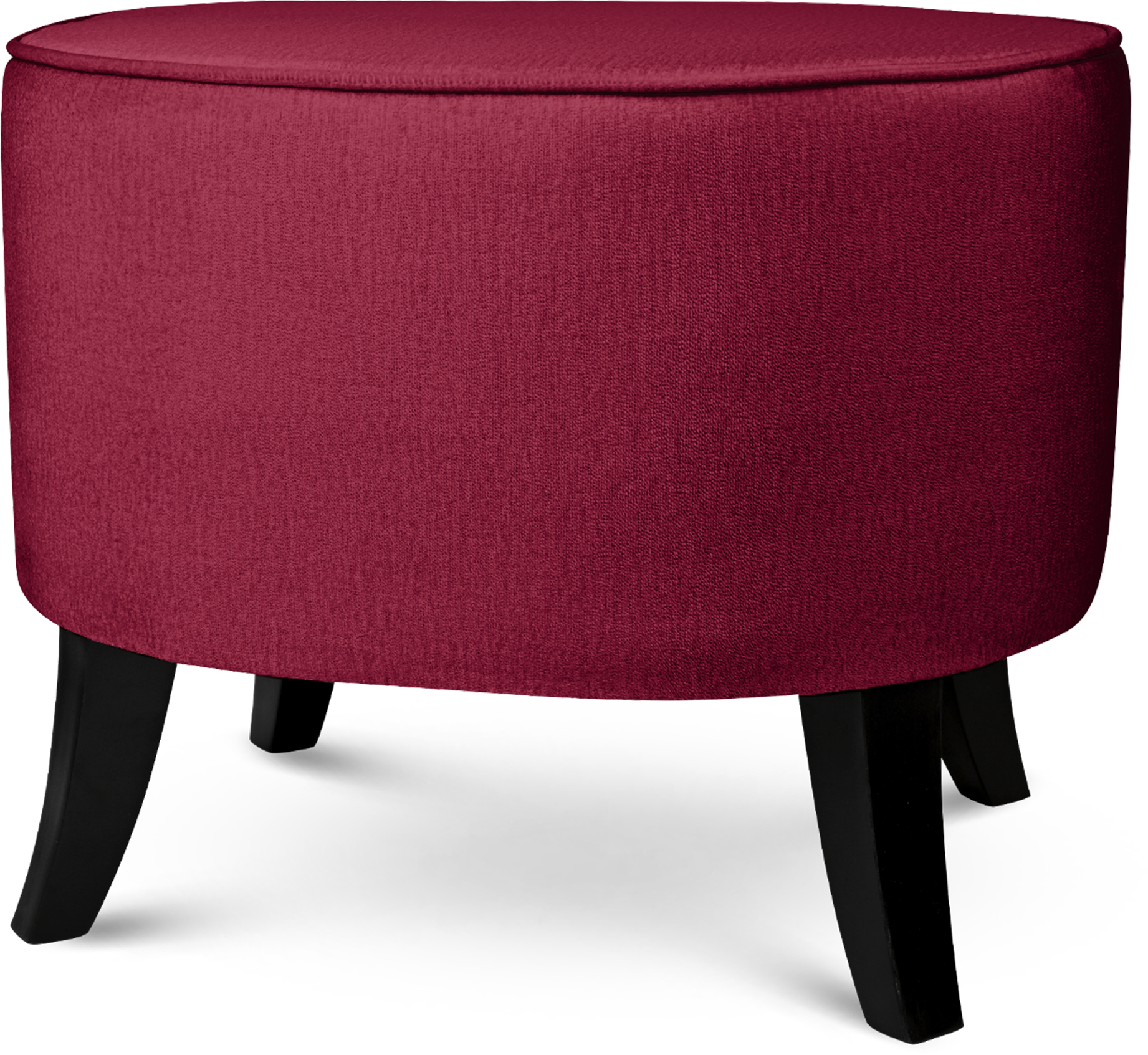 Tapicerowana pufa owalna 52x62x46 cm ŚREDNIA w kolorze czerwonym - siedzisko z welurowej tkaniny, z drewnianymi nóżkami w kolorze czarnego