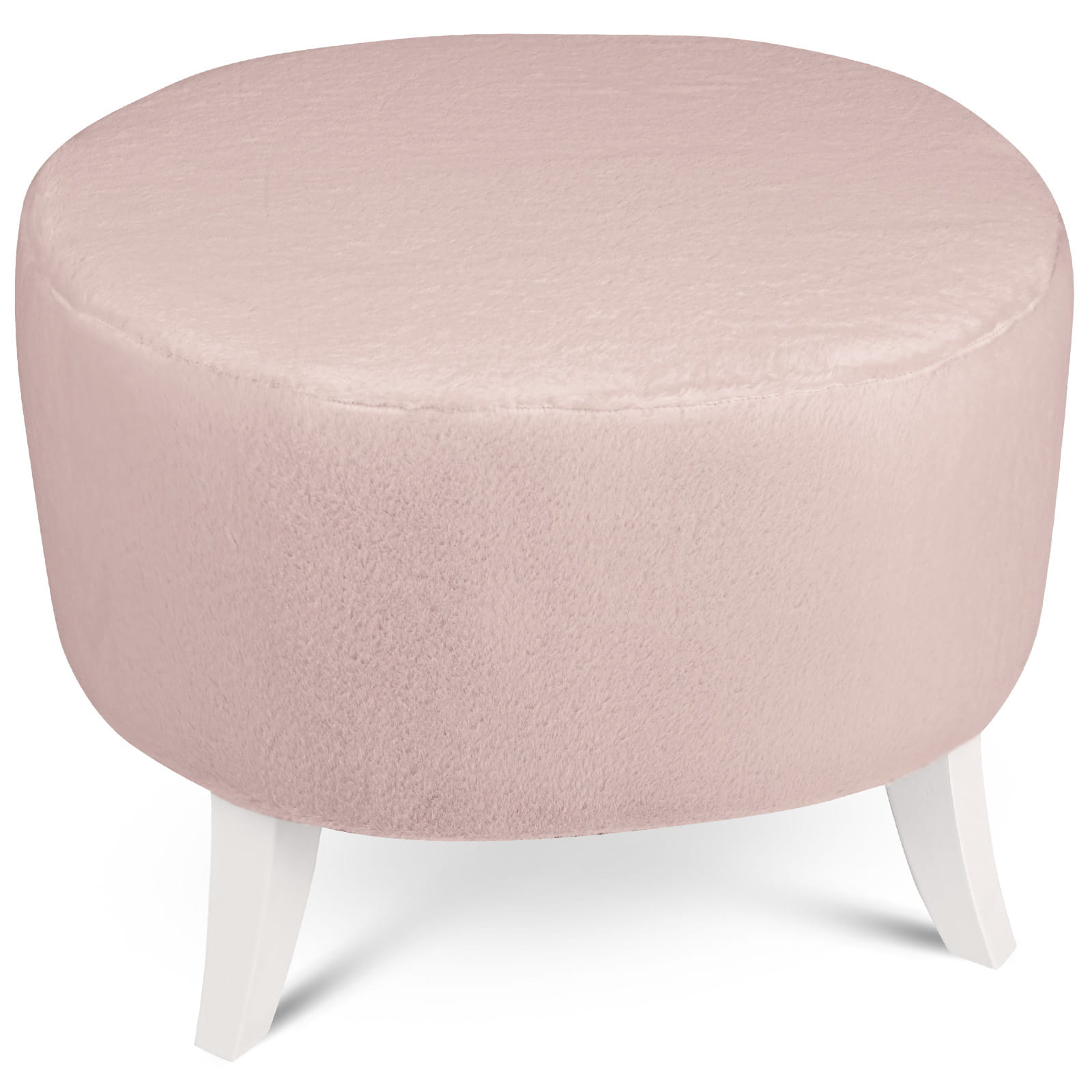 Tapicerowana pufa owalna 52x62x46 cm ŚREDNIA w kolorze jasnoróżówym - siedzisko z tkaniny imitującej futro, z drewnianymi nóżkami w kolorze białym