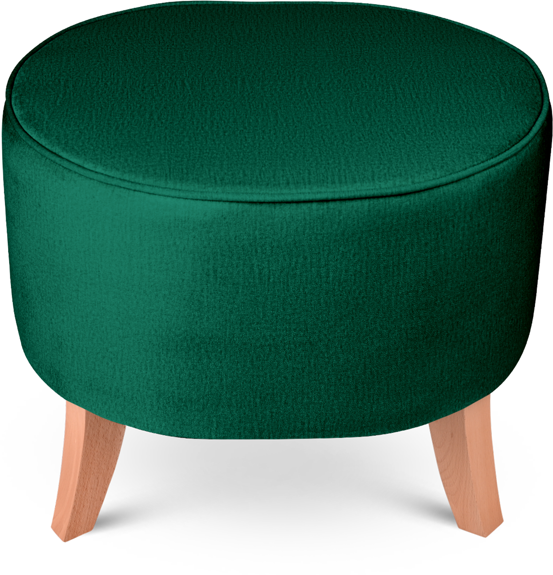 Tapicerowana pufa owalna 52x62x46 cm ŚREDNIA w kolorze zielonym - siedzisko z welurowej tkaniny, z drewnianymi nóżkami w kolorze naturalnego drewna