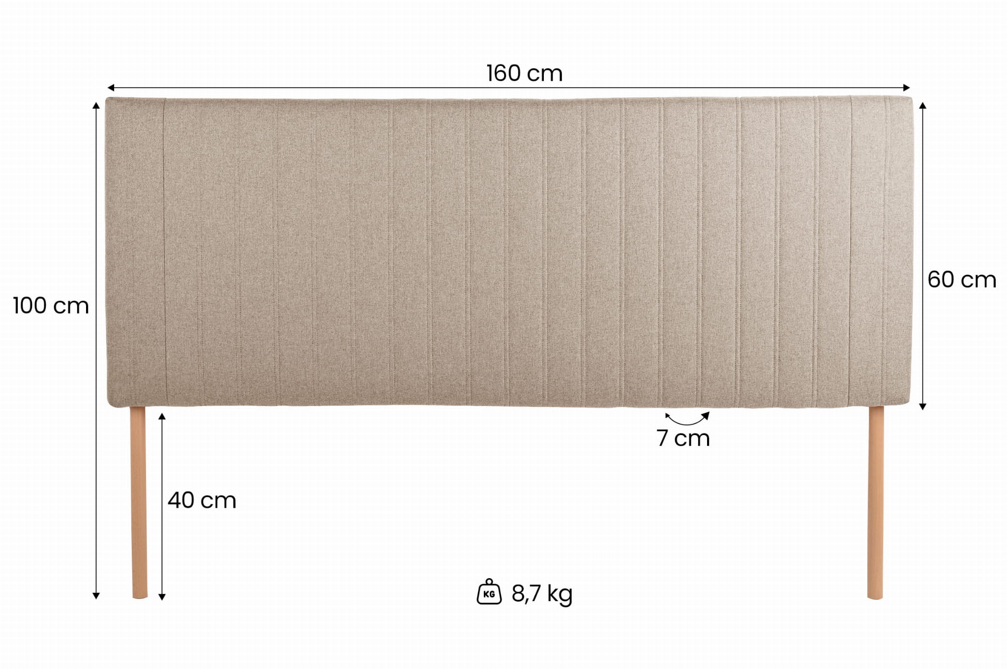 Wezgłowie tapicerowane do łóżka 160 x 60 cm w kolorze beżowym z nóżkami –wezgłowie z przeszyciami