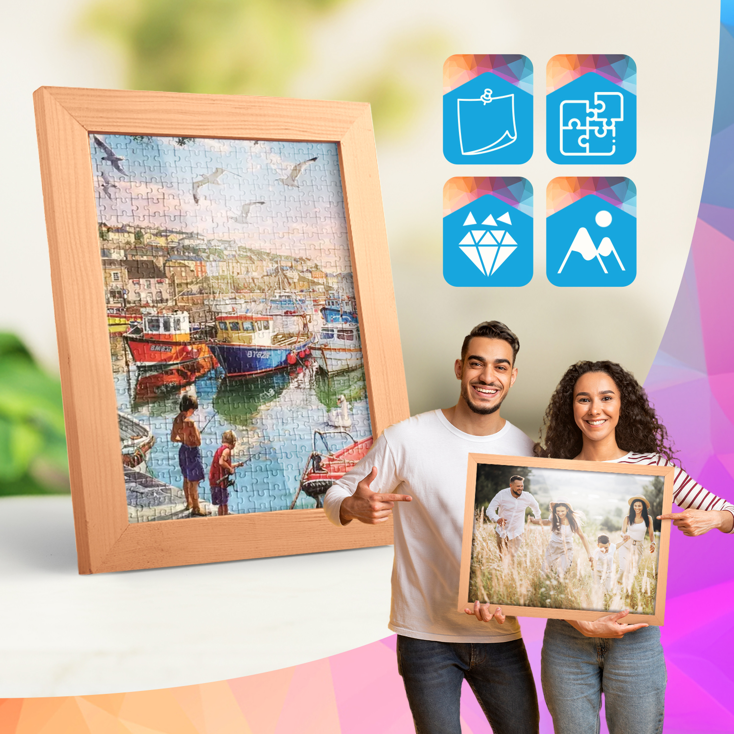 Zestaw drewnianych ramek to estetyczne i uniwersalne rozwiązanie do oprawy zdjęć, plakatów, grafik oraz wydruków dekoracyjnych. Klasyczny, profil ramek nadaje całej kompozycji elegancki wygląd i podkreśla prezentowane motywy, zachowując spójny i uporządkowany charakter aranżacji.