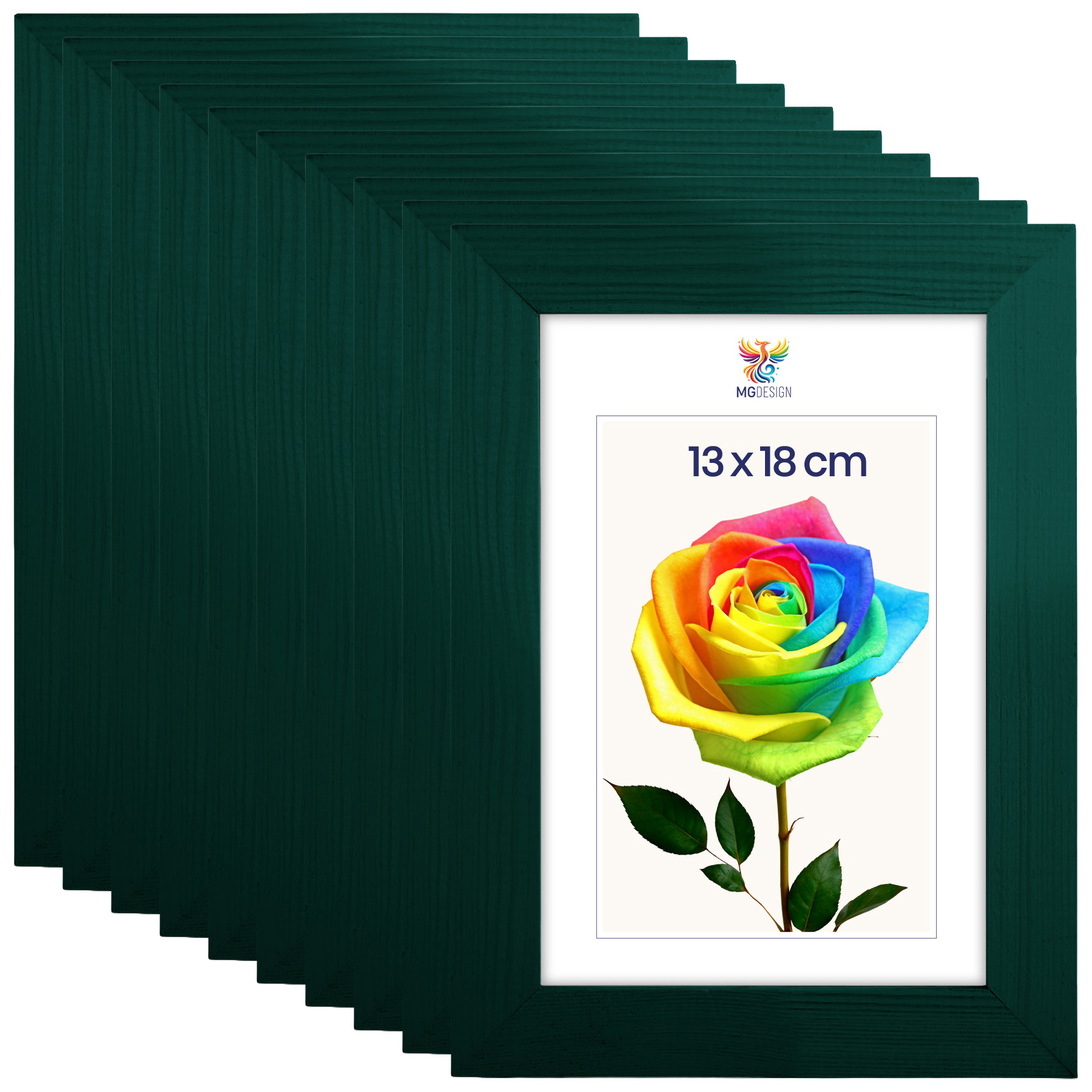 Zestaw 10 szt. ramek na zdjęcia 13 x 18 cm zielonych, z naturalnego drewna