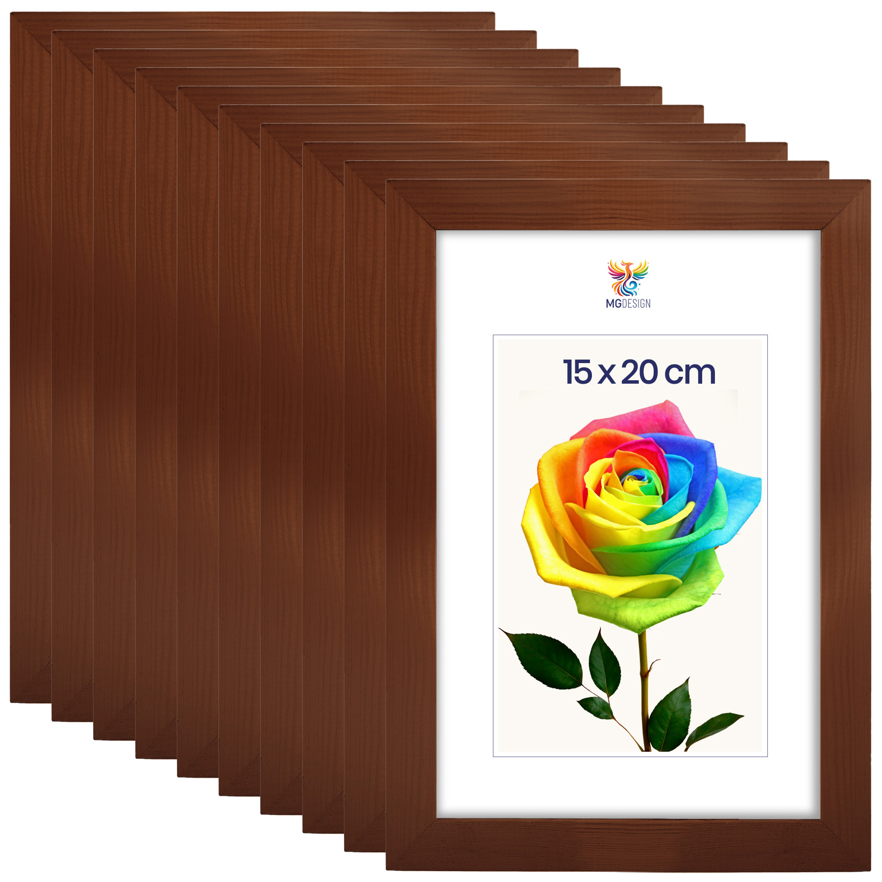 Zestaw 10 szt. ramek na zdjęcia 15 x 20 cm brązowych, z naturalnego drewna