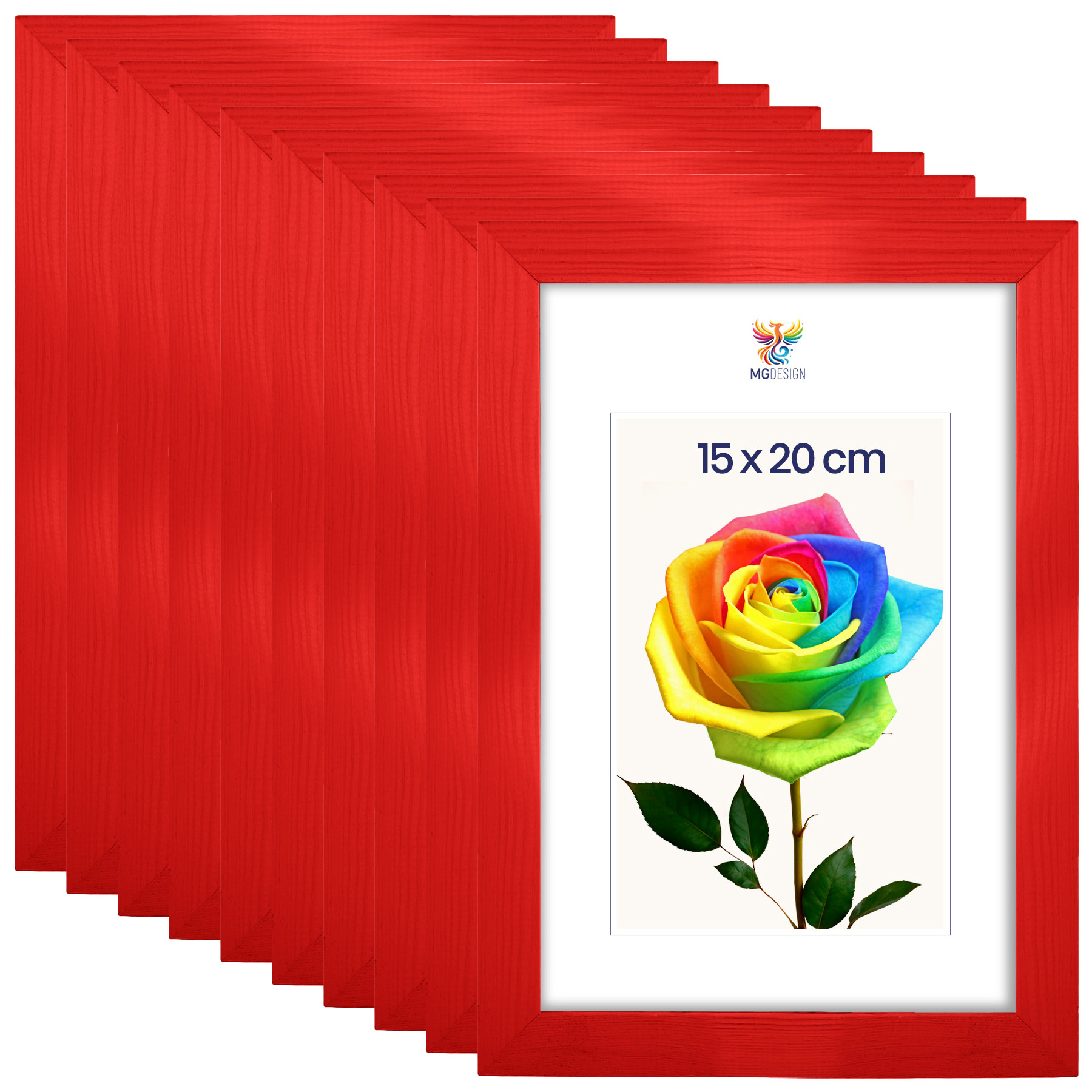 Zestaw 10 szt. ramek na zdjęcia 15 x 20 cm czerwonych, z naturalnego drewna