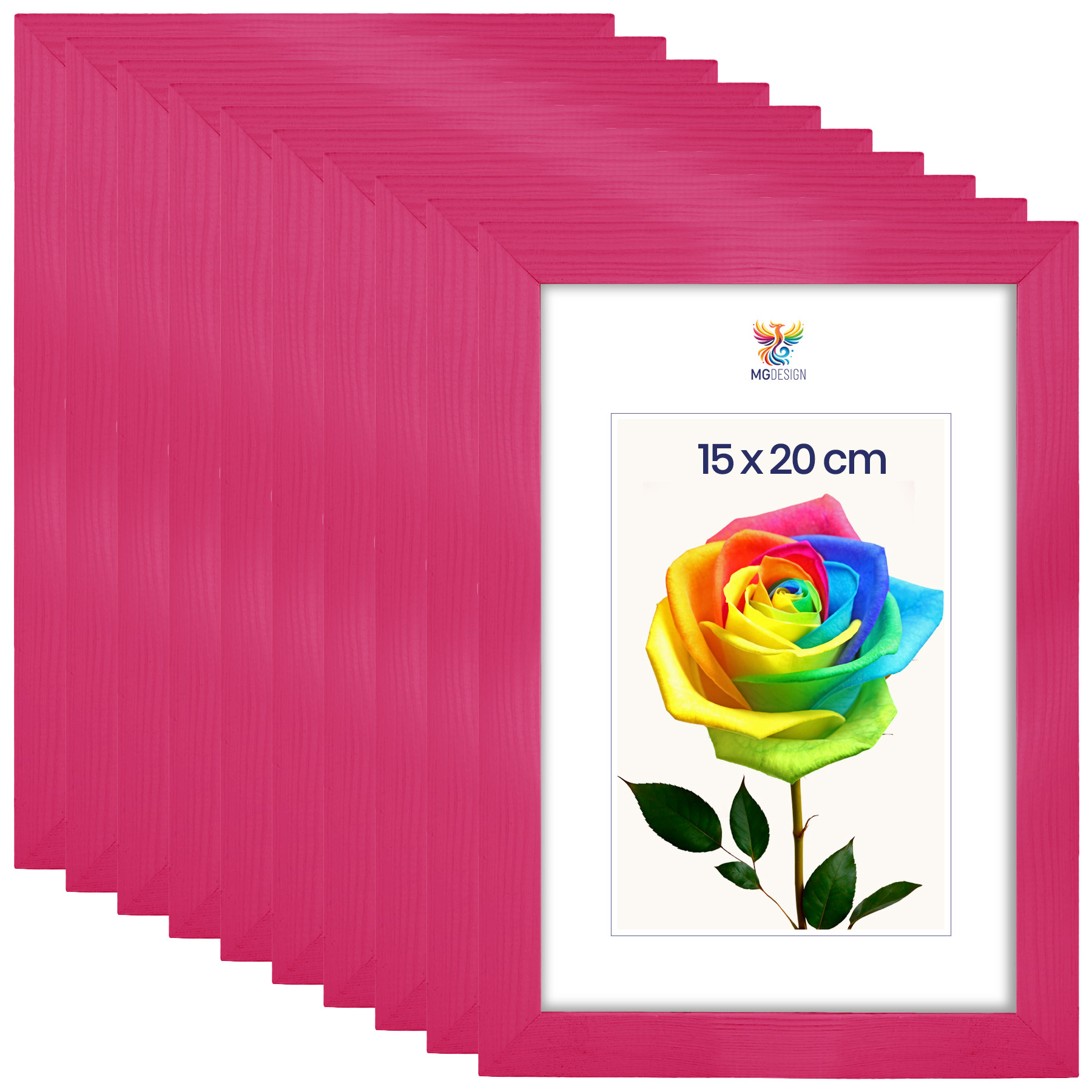 Zestaw 10 szt. ramek na zdjęcia 15 x 20 cm różowych, z naturalnego drewna