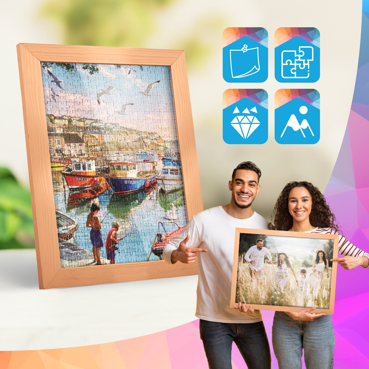 Zestaw drewnianych ramek to estetyczne i uniwersalne rozwiązanie do oprawy zdjęć, plakatów, grafik oraz wydruków dekoracyjnych. Klasyczny, profil ramek nadaje całej kompozycji elegancki wygląd i podkreśla prezentowane motywy, zachowując spójny i uporządkowany charakter aranżacji.