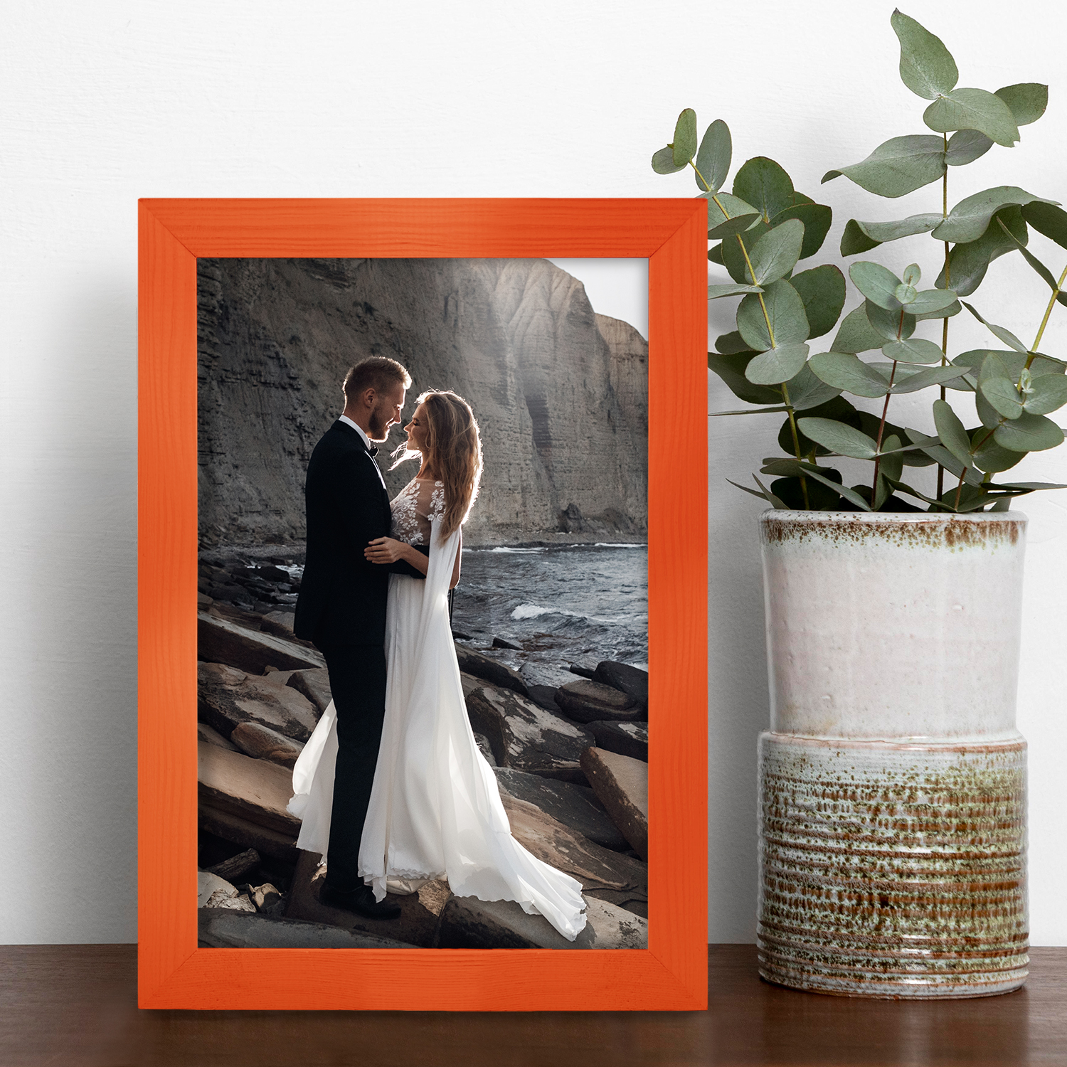 Zestaw 10 szt. ramek na zdjęcia 15 x 23 cm pomarańczowych, z naturalnego drewna