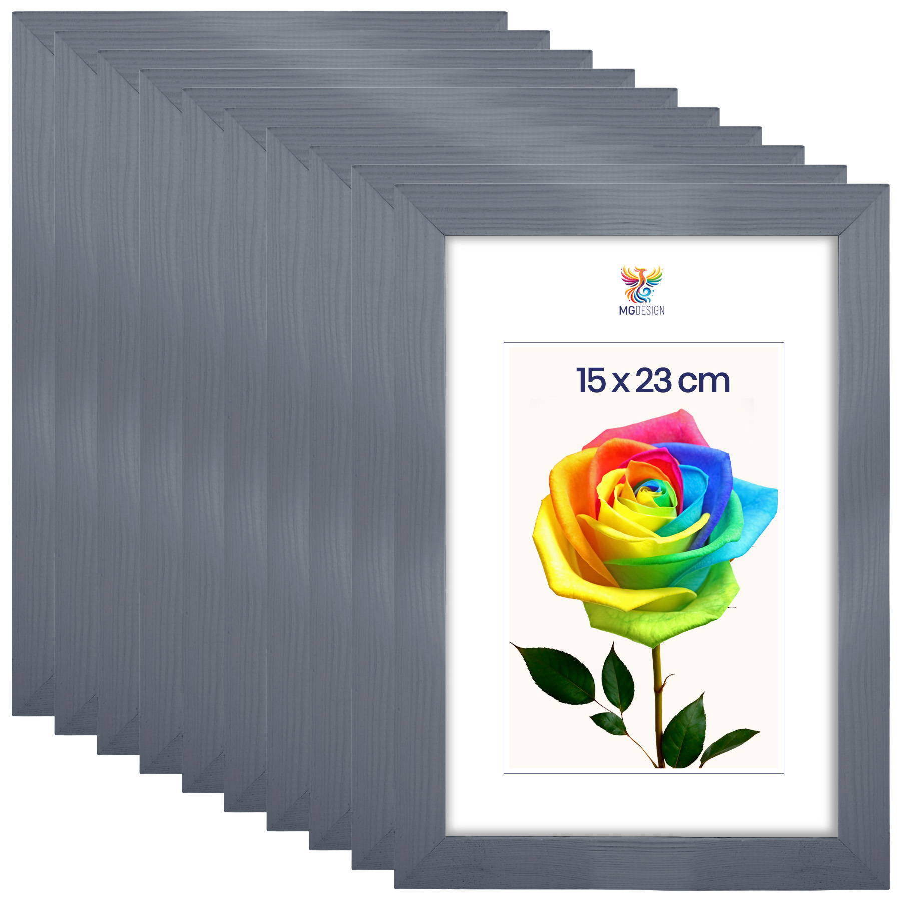Zestaw 10 szt. ramek na zdjęcia 15 x 23 cm szarych, z naturalnego drewna