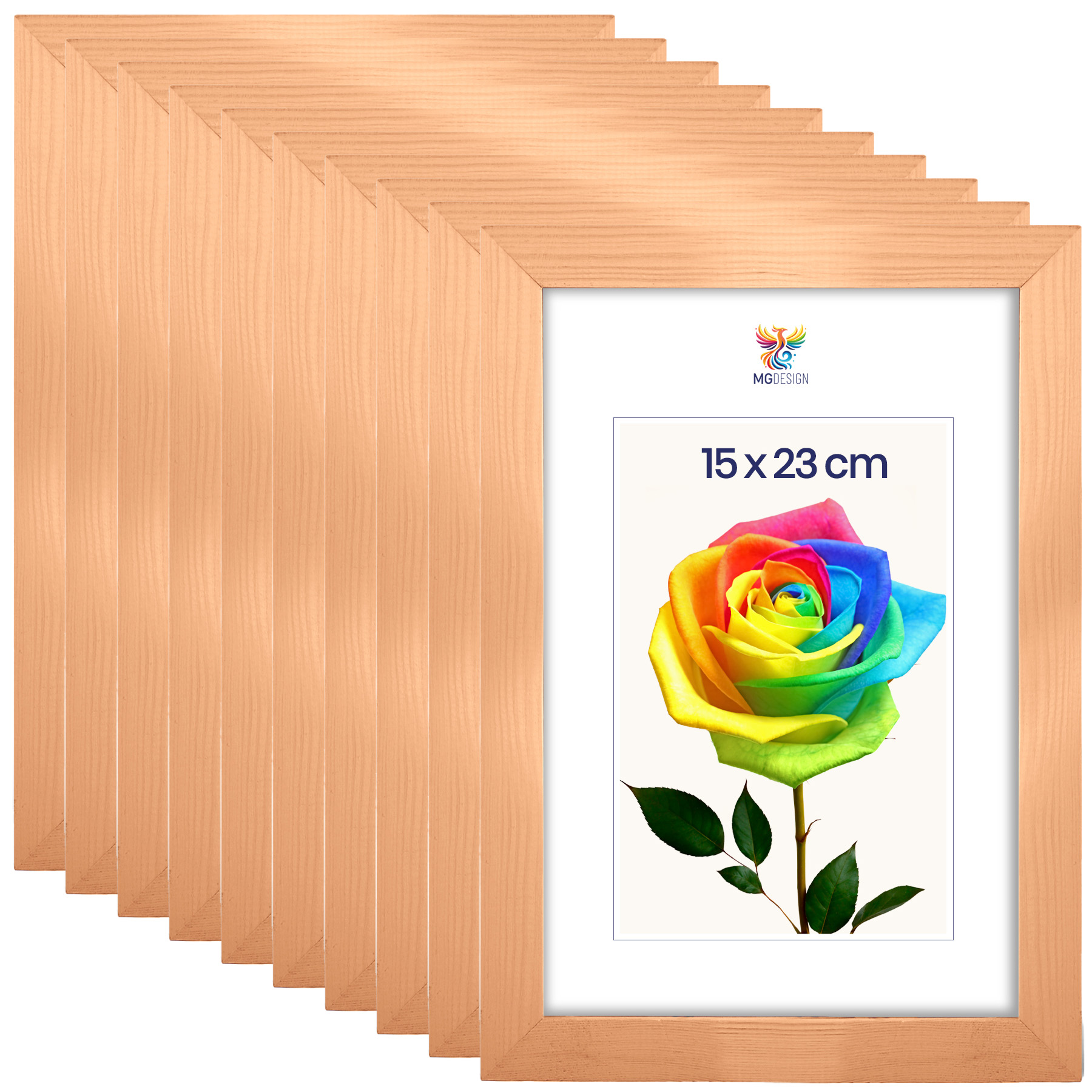 Zestaw 10 szt. ramek na zdjęcia 15 x 23 cm z naturalnego drewna